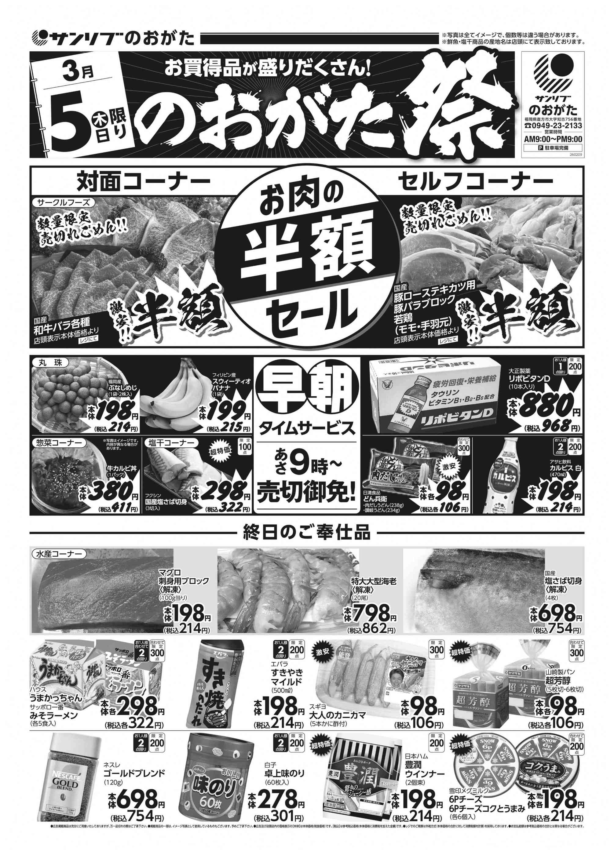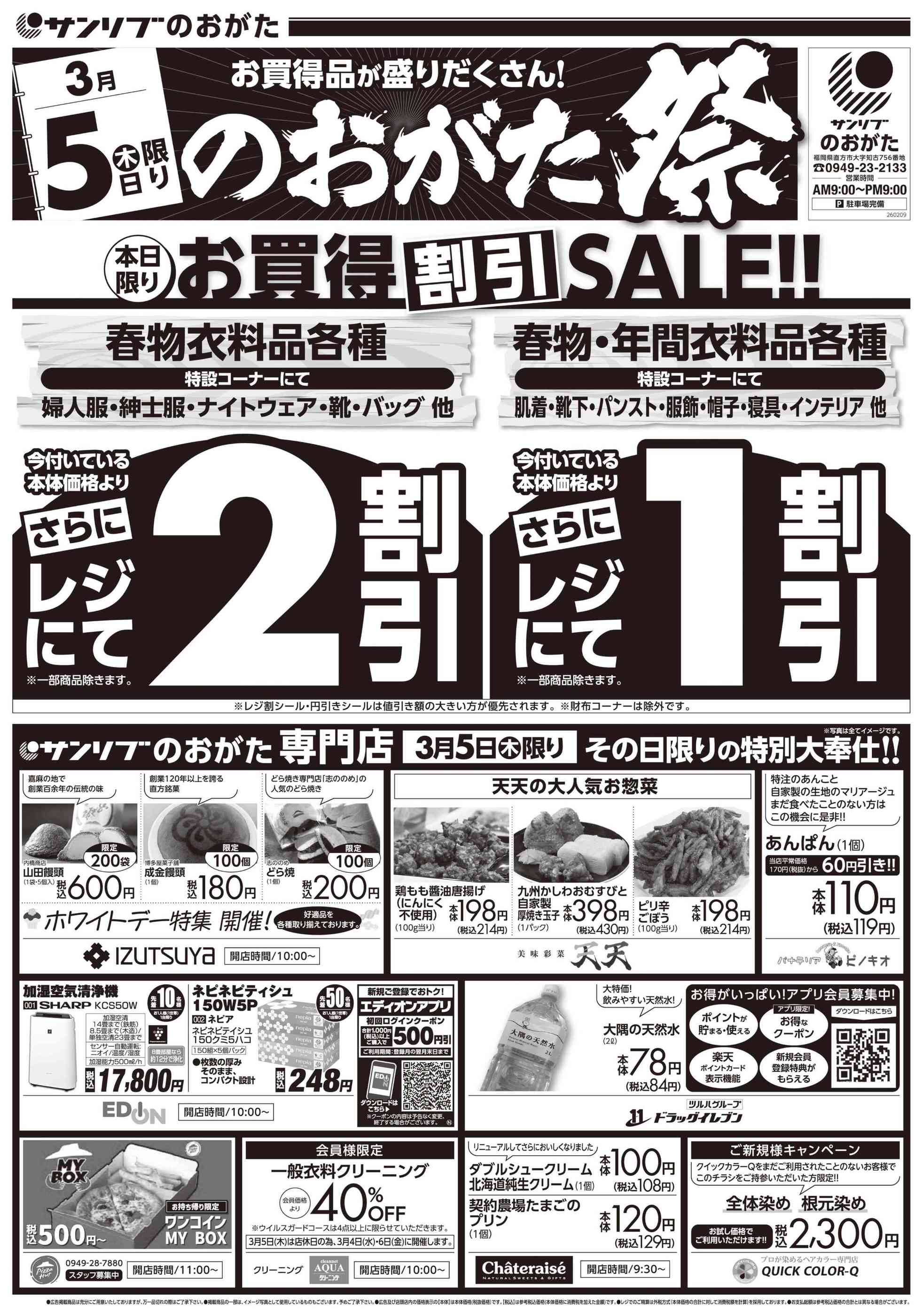 サンリブのおがた店今週のチラシ(2026年3月9日〜3月15日)