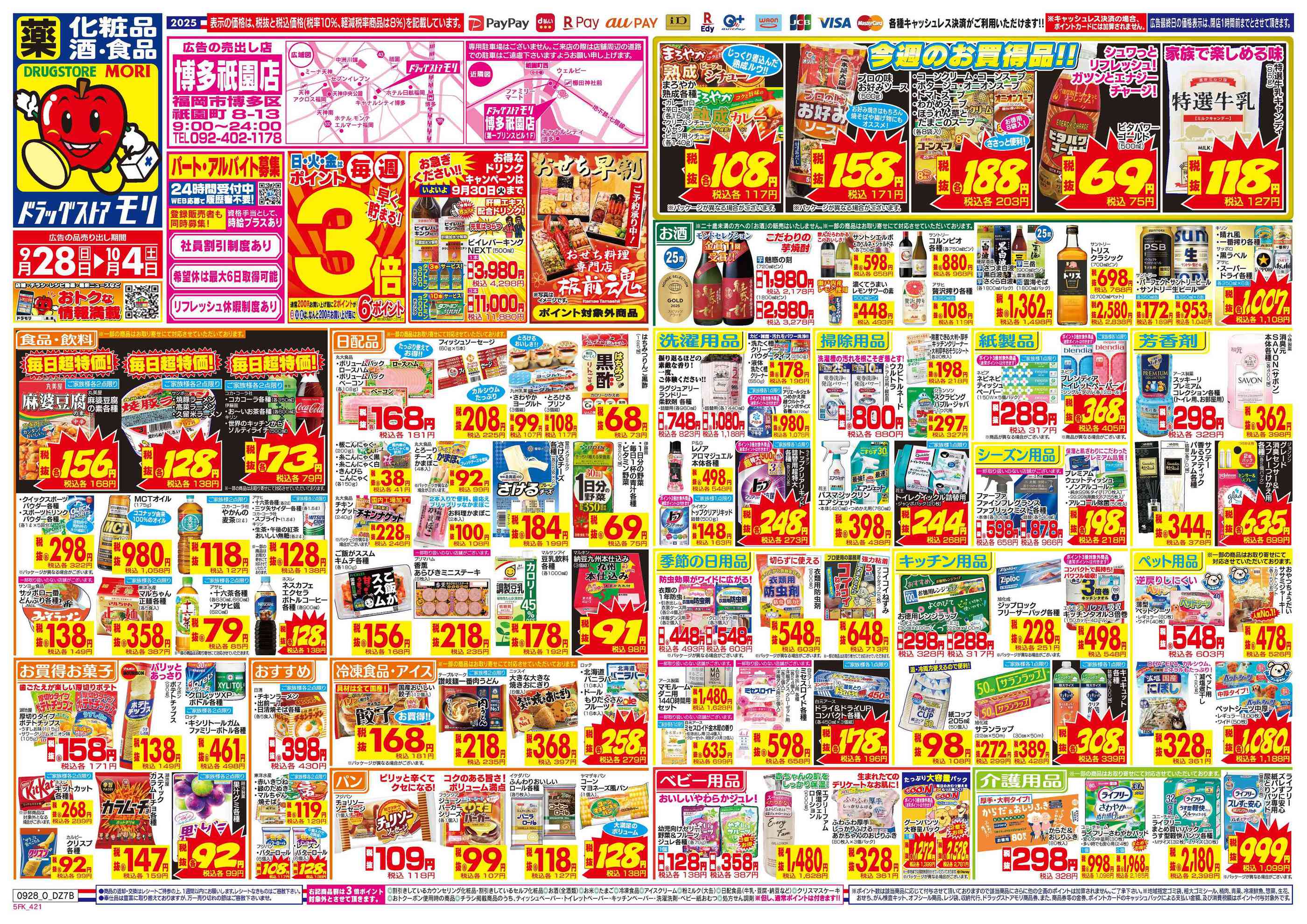 ドラッグストアモリ博多祇園店今週のチラシ(2025年9月29日〜10月5日)