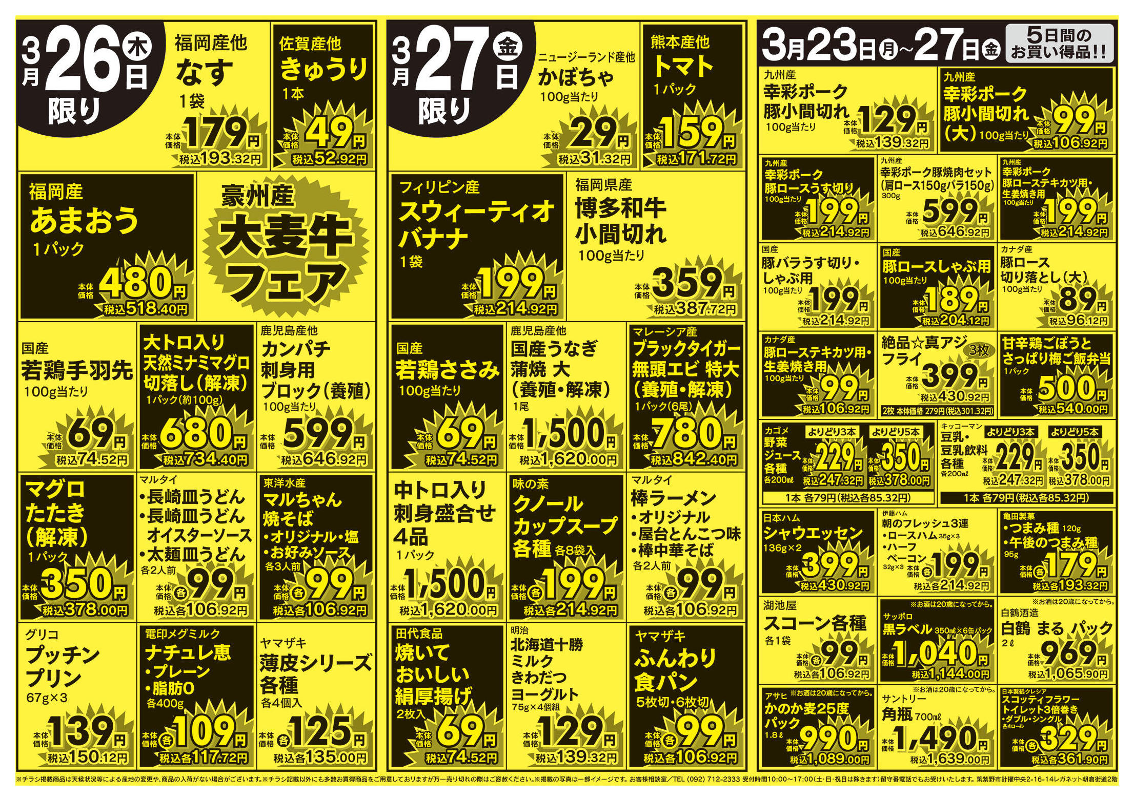 特売やセール情報など最新のチラシを掲載中。(3種類、4枚のチラシを掲載しています)