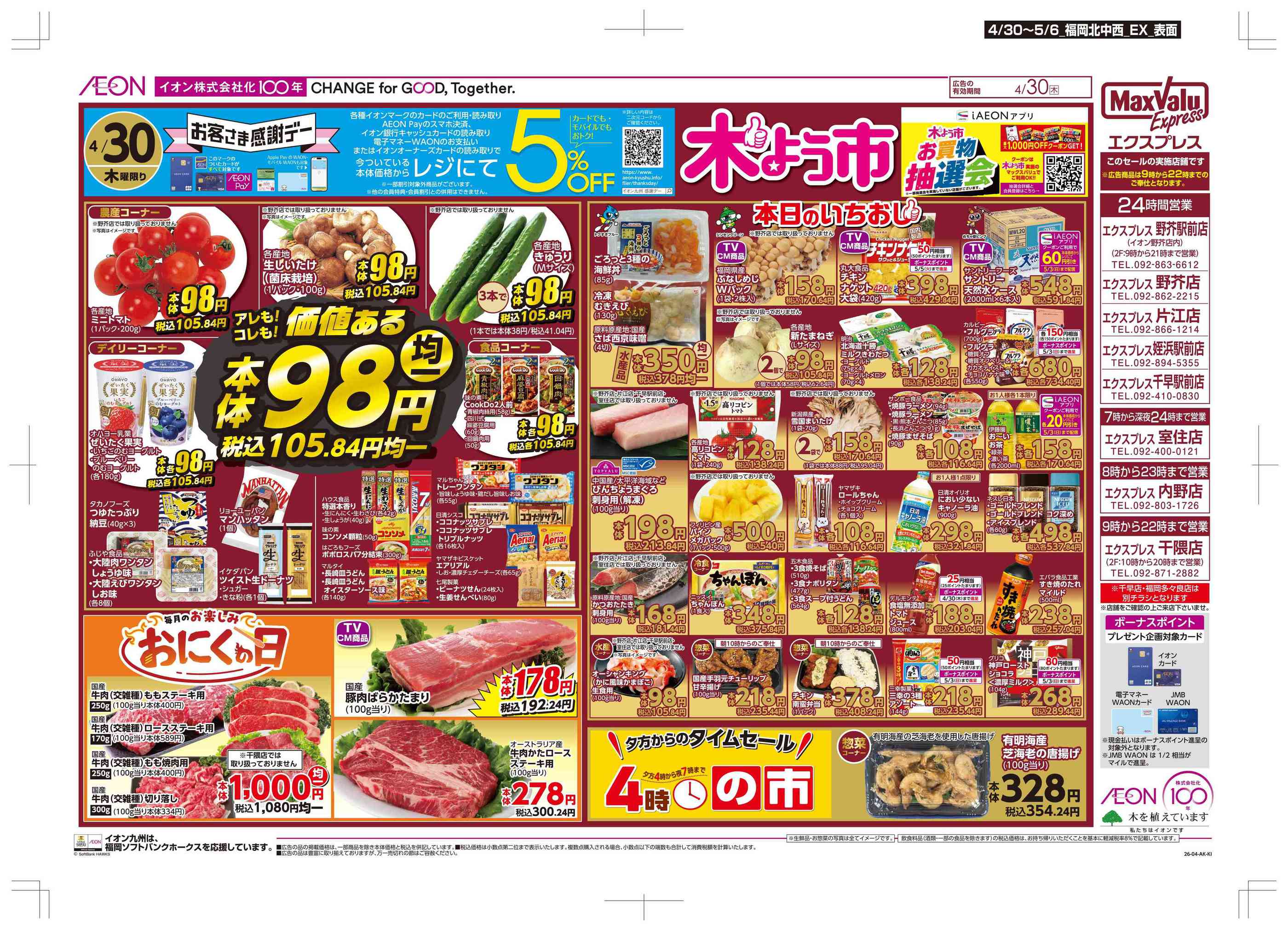 マックスバリュエクスプレス千早駅前店今週のチラシ(2026年4月27日〜5月3日)