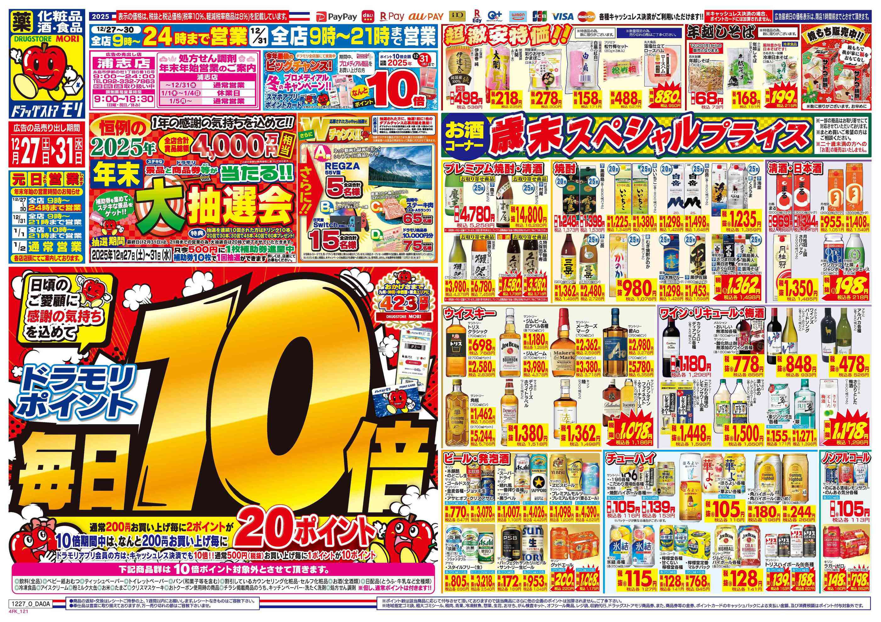 ドラッグストアモリ浦志店今週のチラシ(2025年12月29日〜1月4日)