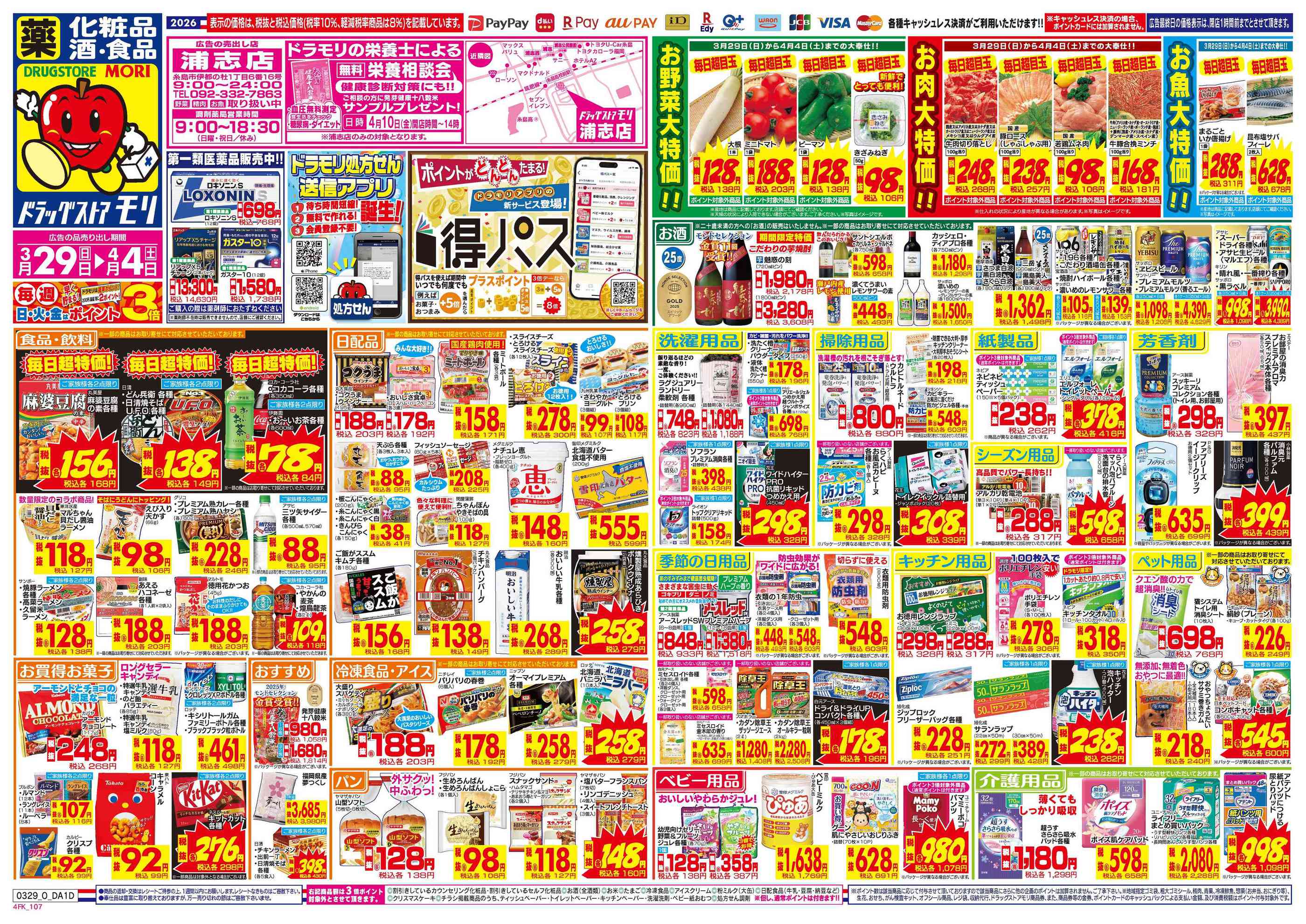 ドラッグストアモリ浦志店今週のチラシ(2026年3月30日〜4月5日)