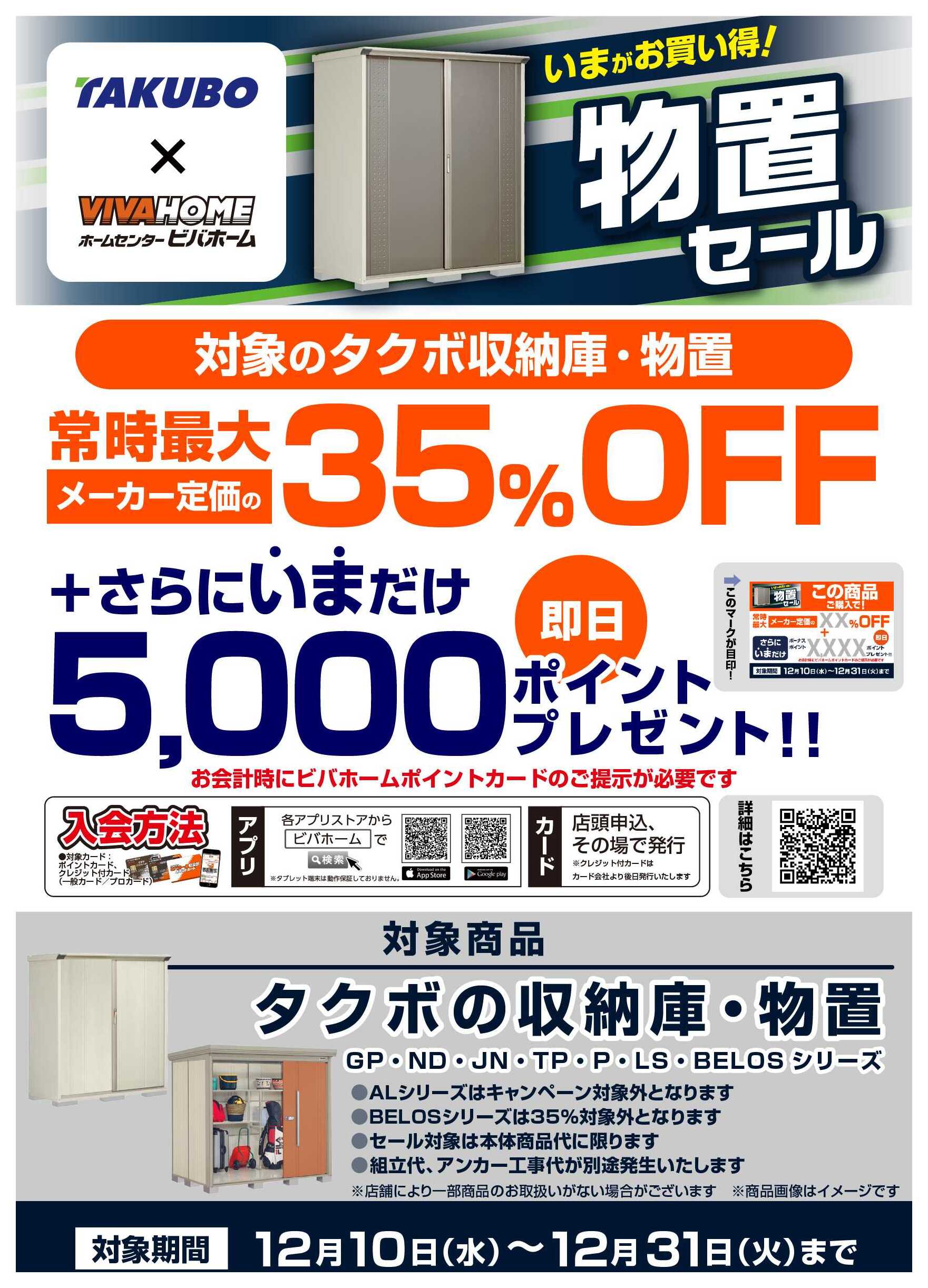 - スーパービバホーム 【即付与】タクボ物置キャンペーン! (1枚)