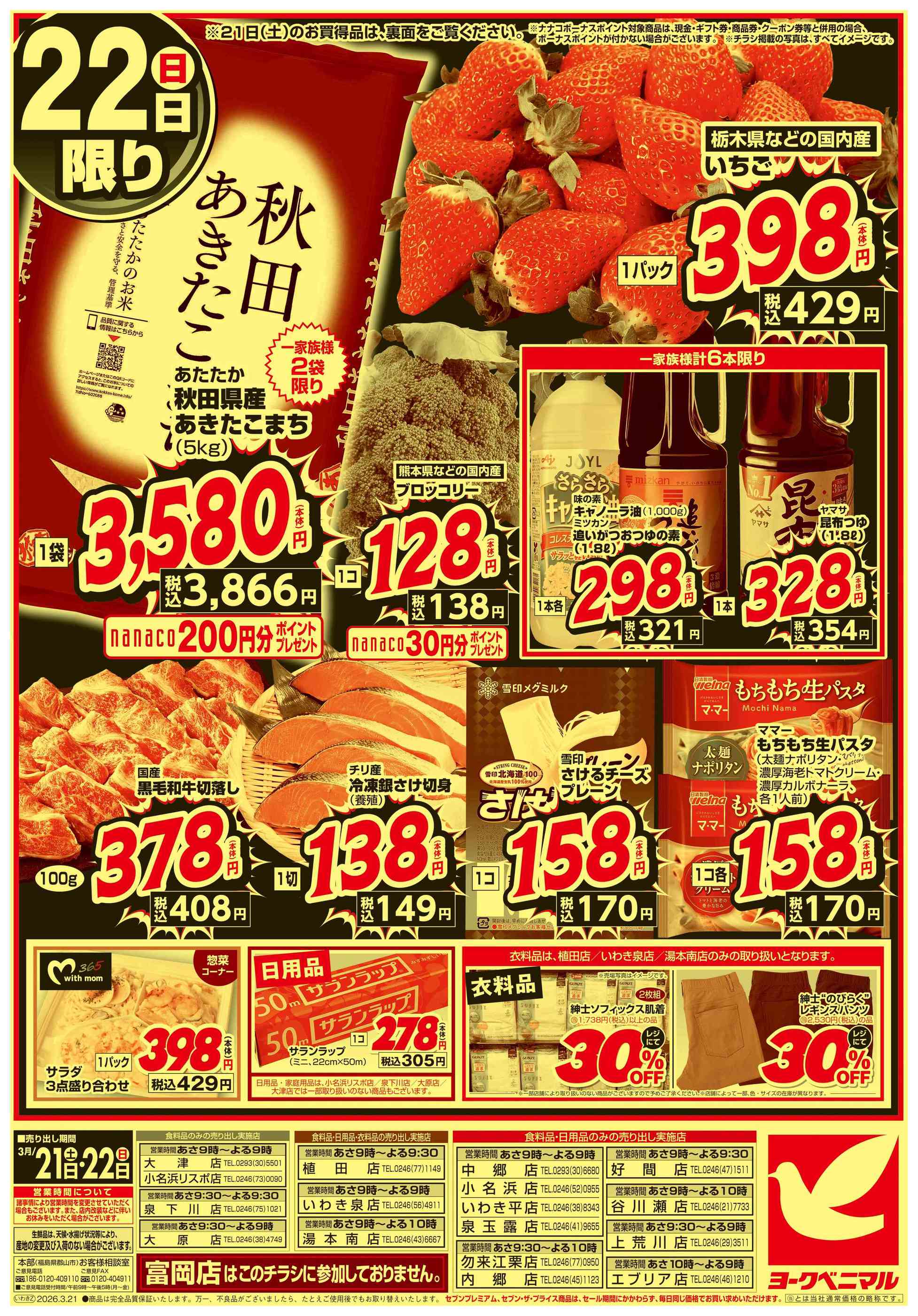 ヨークベニマル新谷川瀬店今週のチラシ(2026年3月30日〜4月5日)