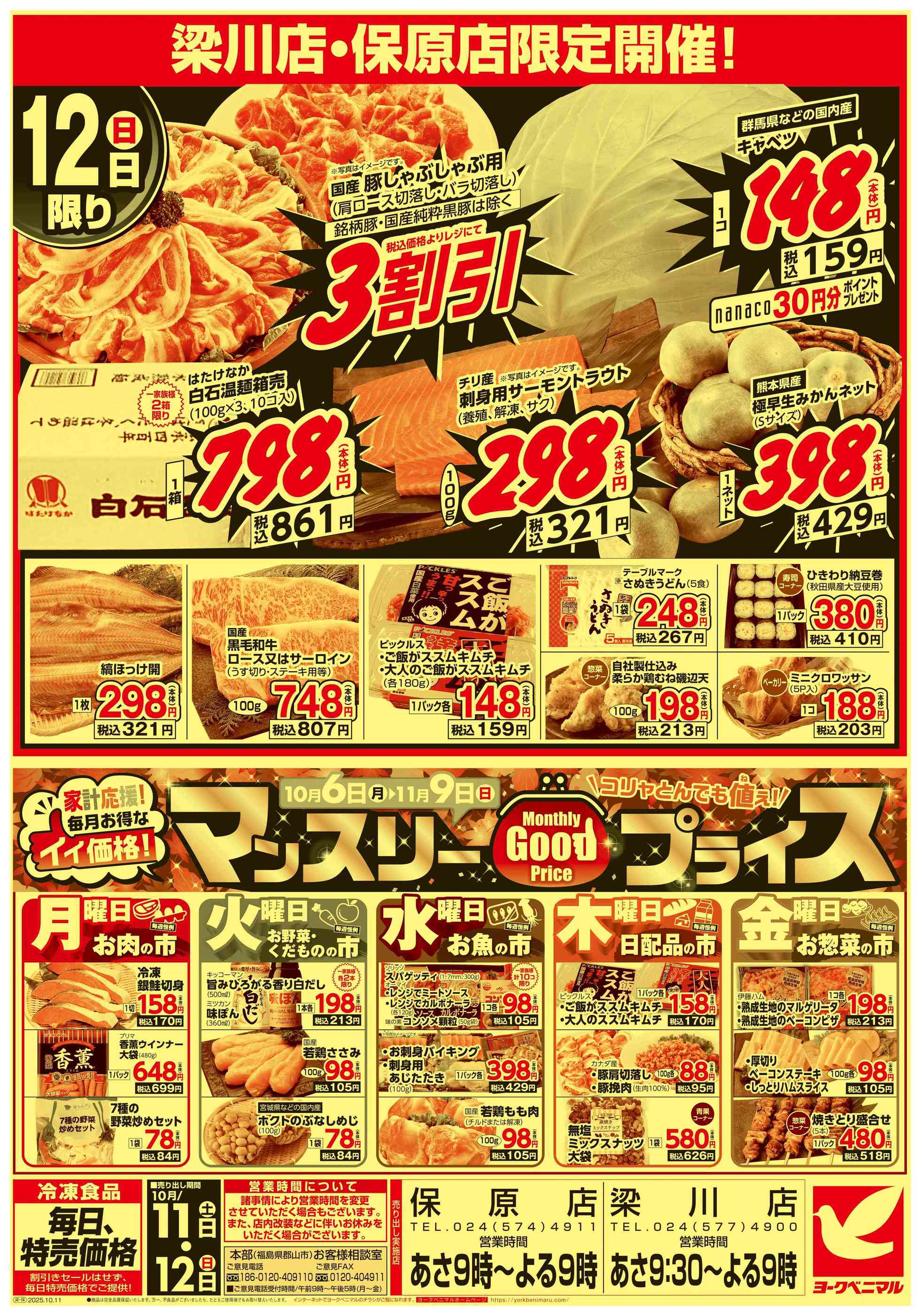 ヨークベニマル梁川店今週のチラシ(2025年10月13日〜10月19日)
