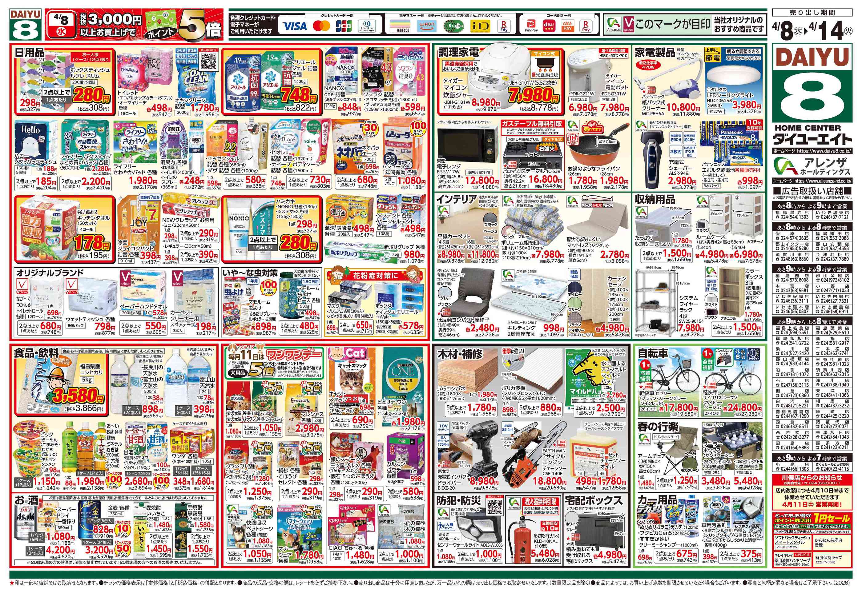 ダイユーエイト西若松店今週のチラシ(2026年4月6日〜4月12日)