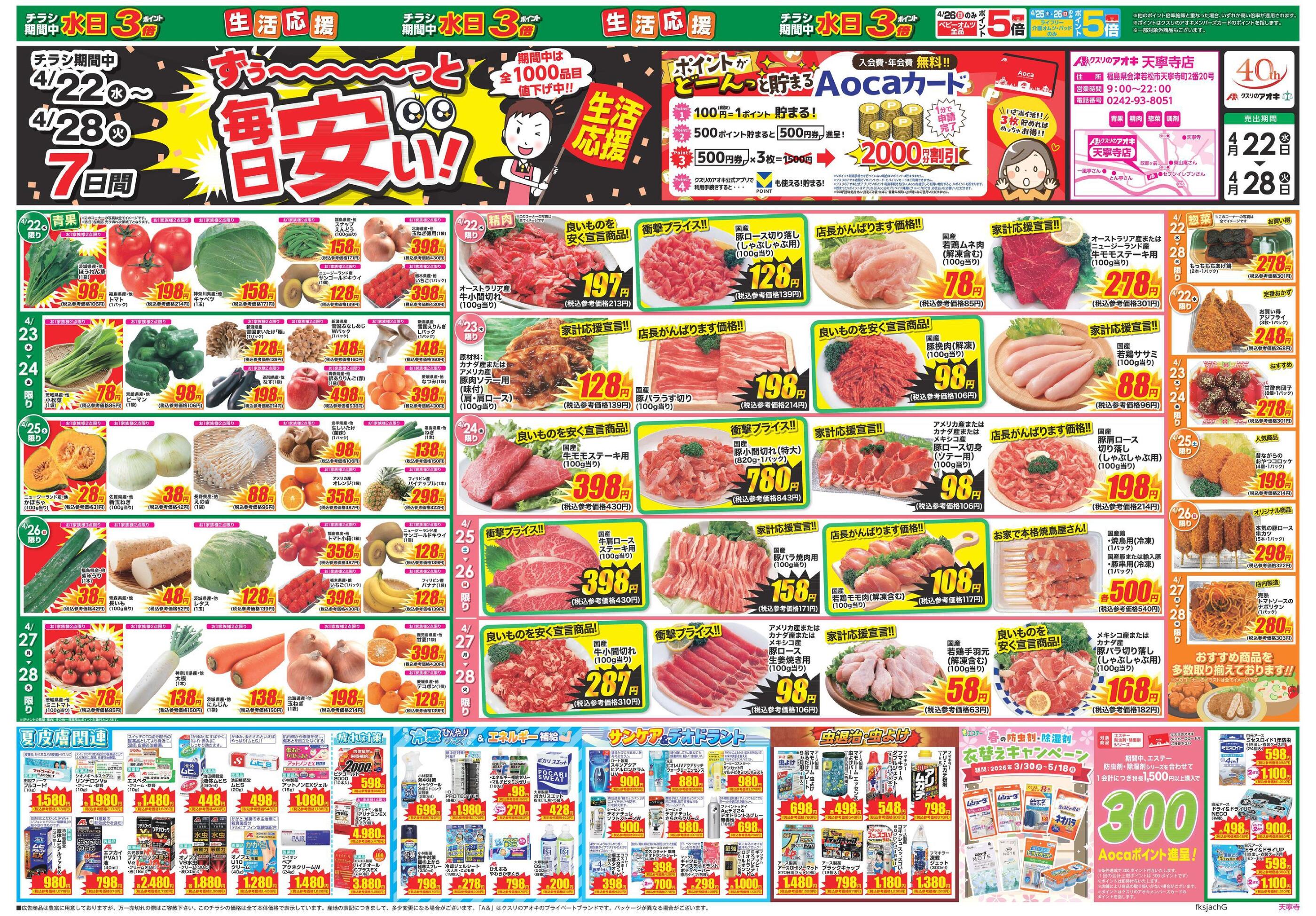 クスリのアオキ天寧寺店今週のチラシ(2026年4月20日〜4月26日)