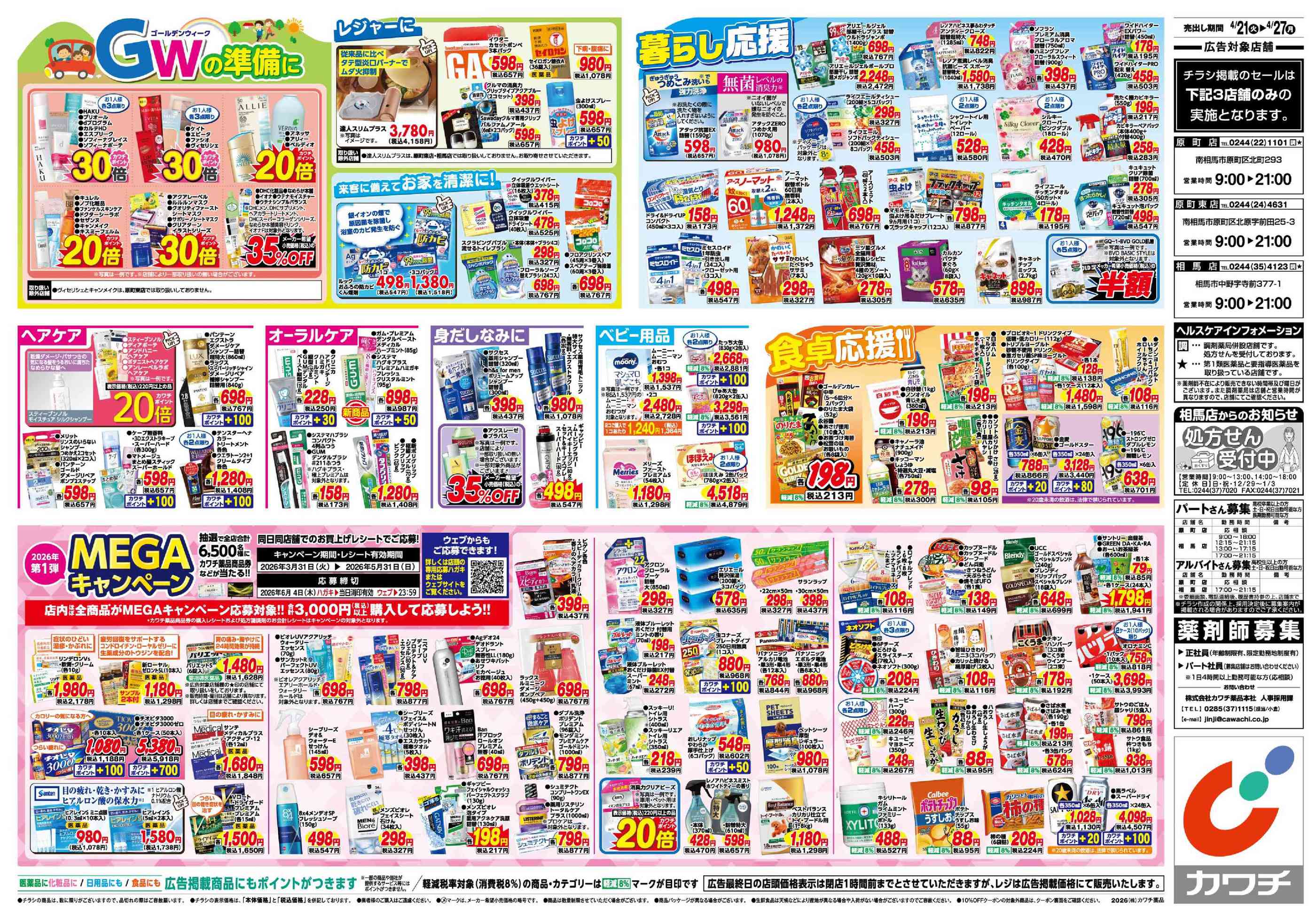 カワチ薬品原町東店今週のチラシ(2026年4月20日〜4月26日)