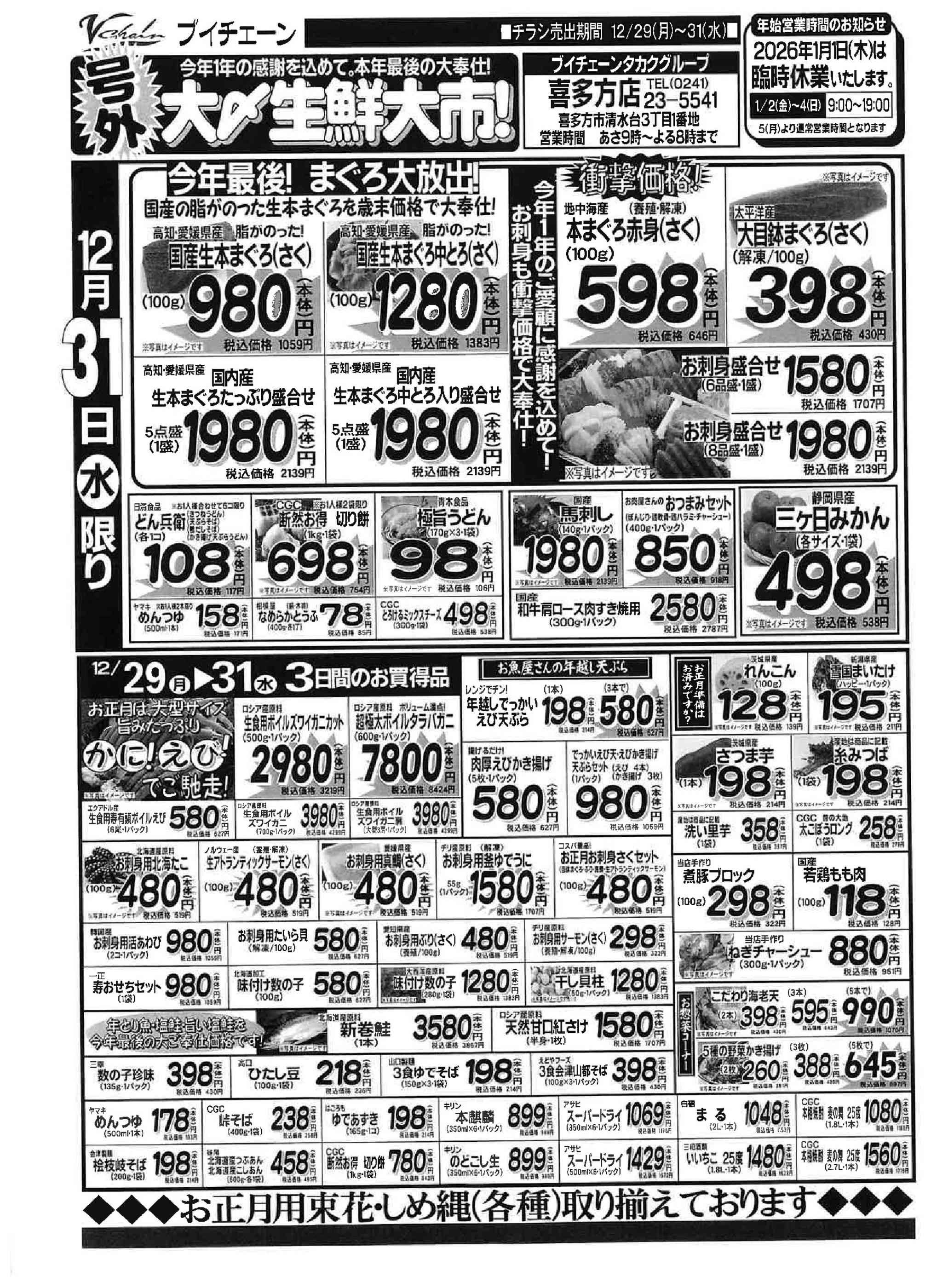 ブイチェーン喜多方店今週のチラシ(2025年12月29日〜1月4日)