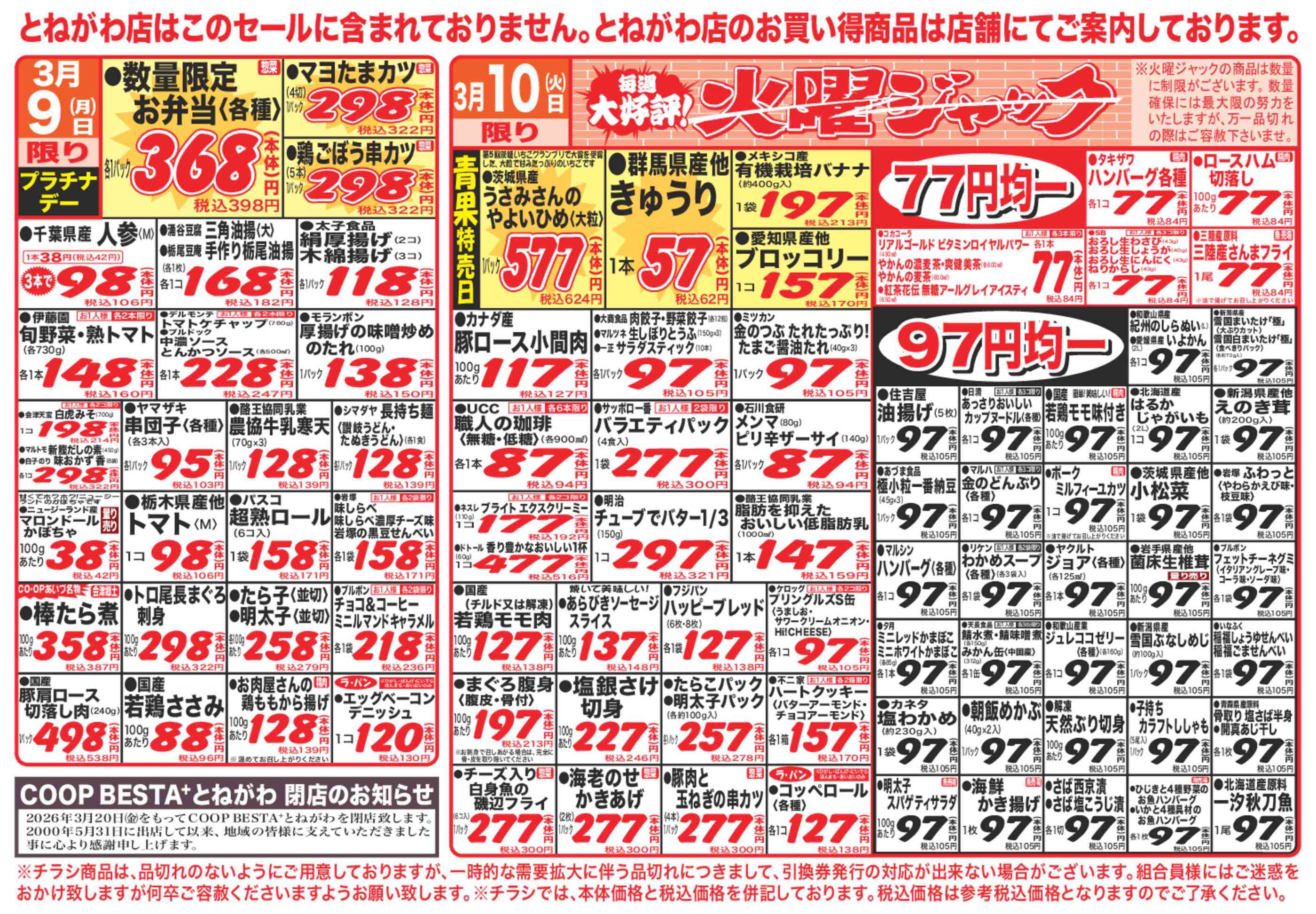 コープバリューぷらざ店今週のチラシ(2026年3月16日〜3月22日)