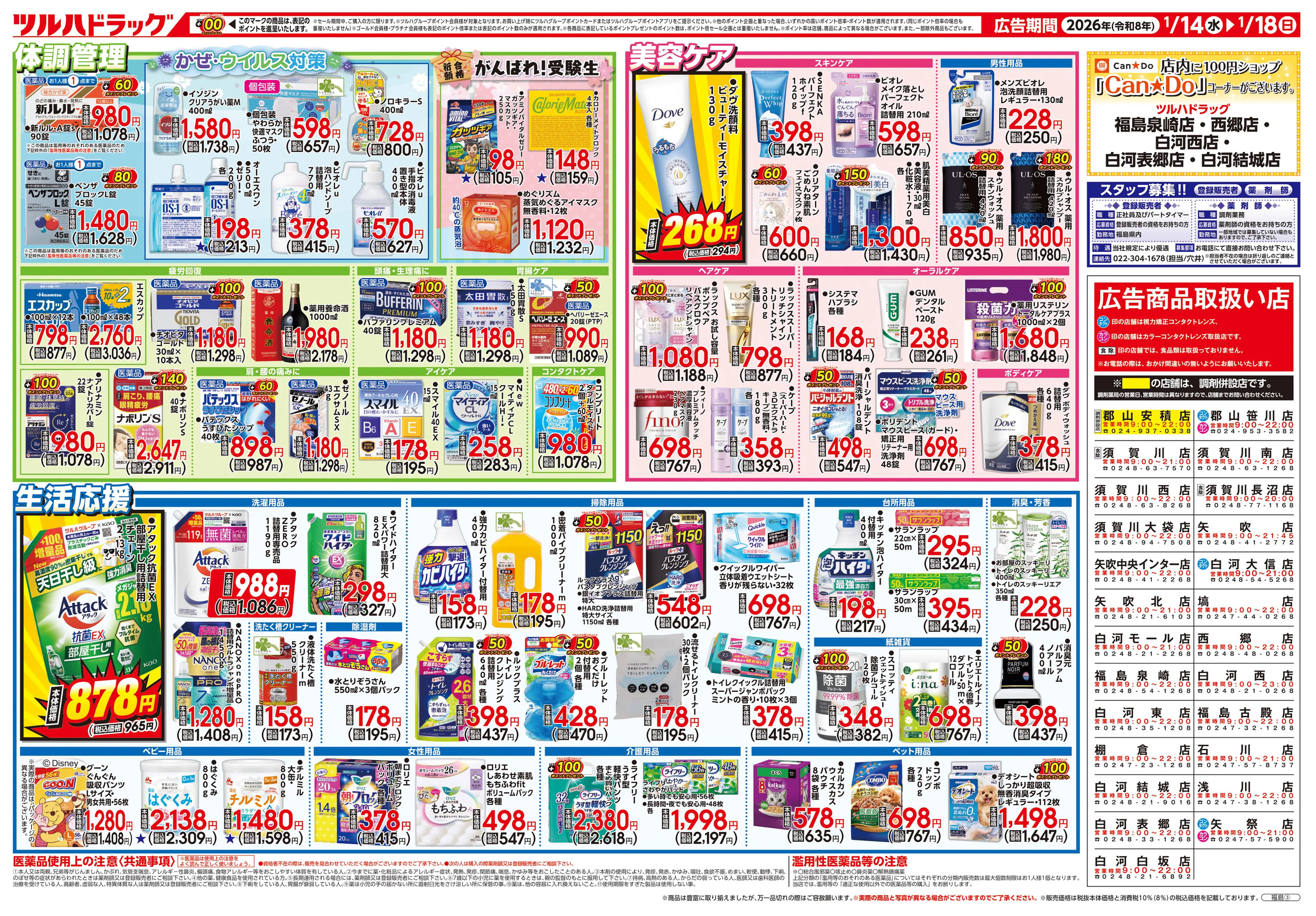 ツルハドラッグ白河西店今週のチラシ(2026年1月12日〜1月18日)