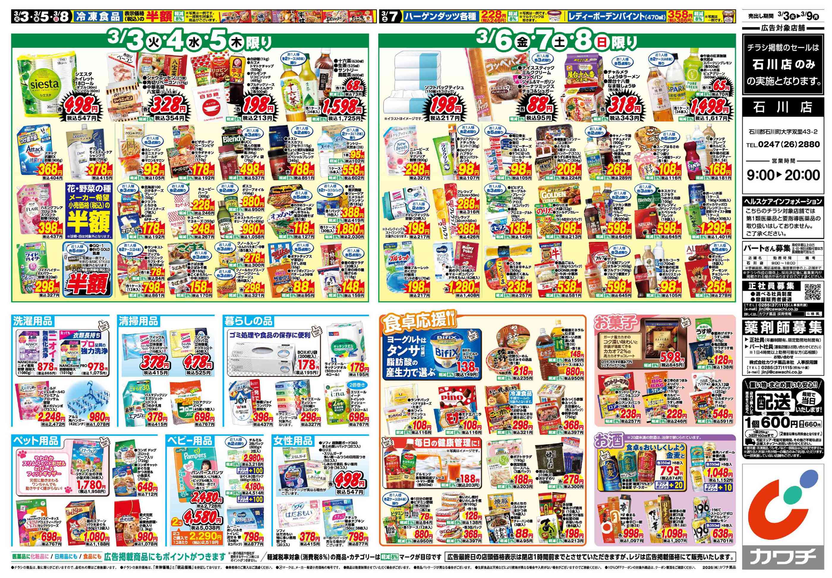 カワチ薬品石川店今週のチラシ(2026年3月2日〜3月8日)