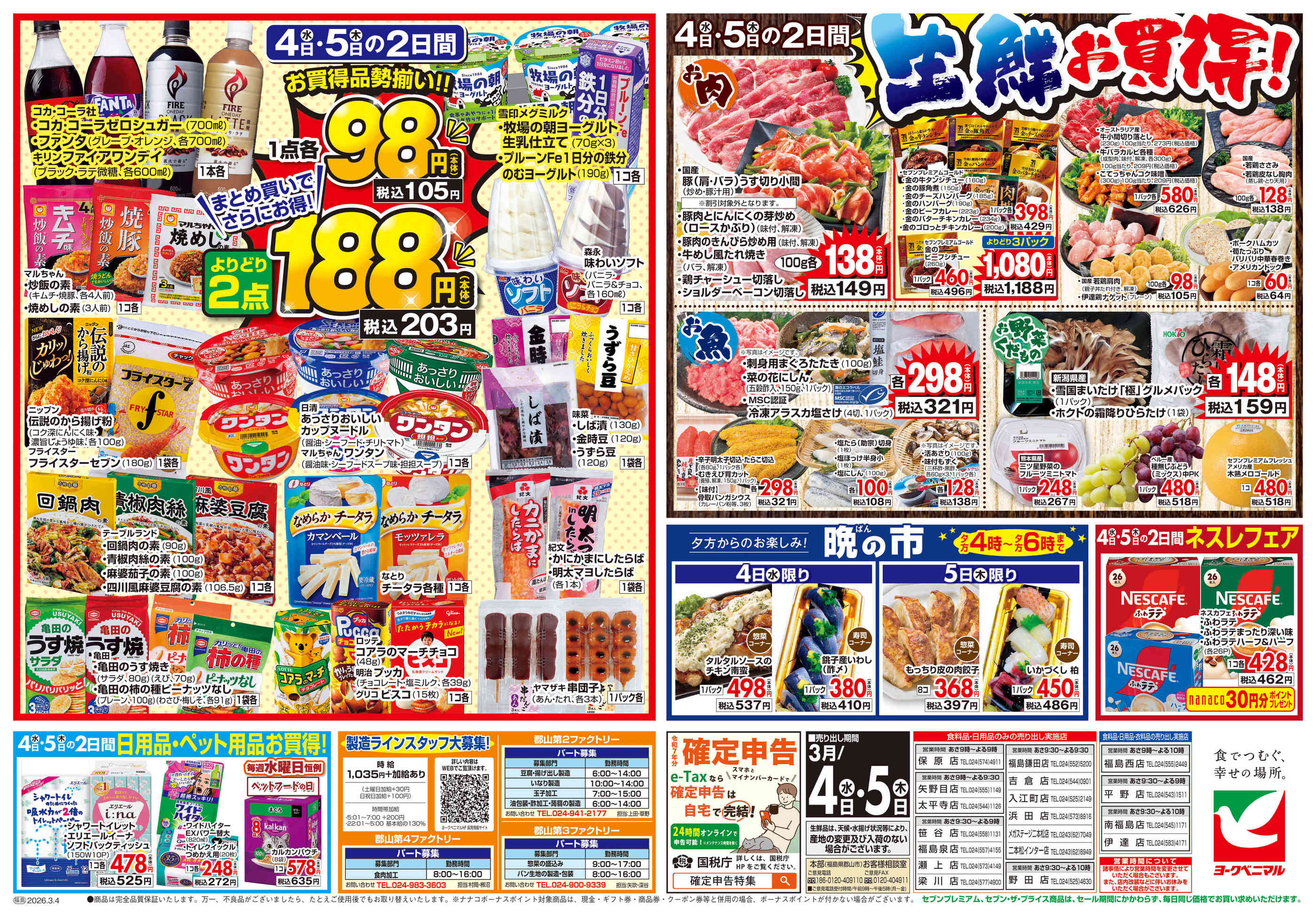 特売やセール情報など最新のチラシを掲載中。(4種類、6枚のチラシを掲載しています)