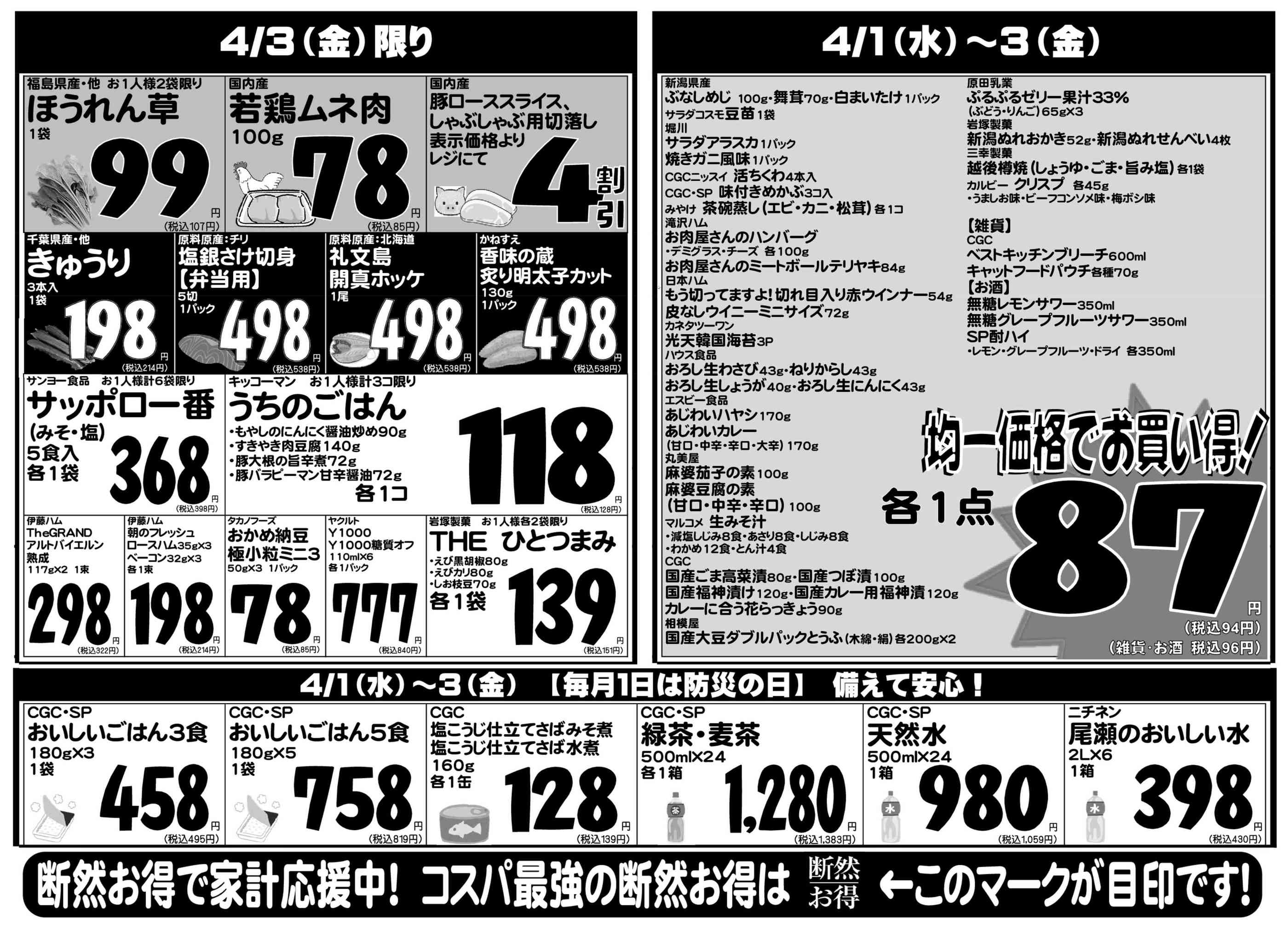 特売やセール情報など最新のチラシを掲載中。(2種類、3枚のチラシを掲載しています)