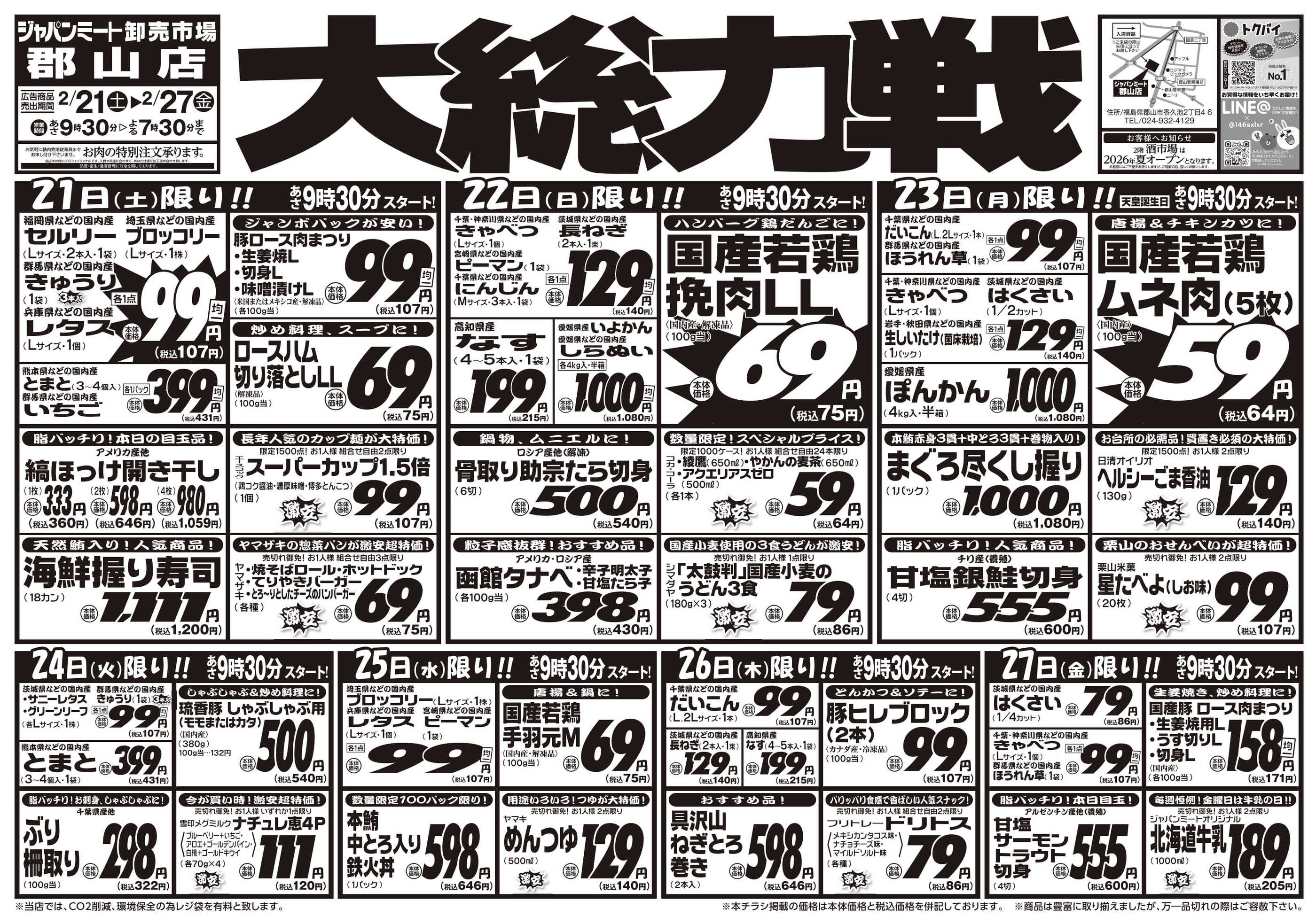 ジャパンミート卸売市場郡山店今週のチラシ(2026年2月23日〜3月1日)
