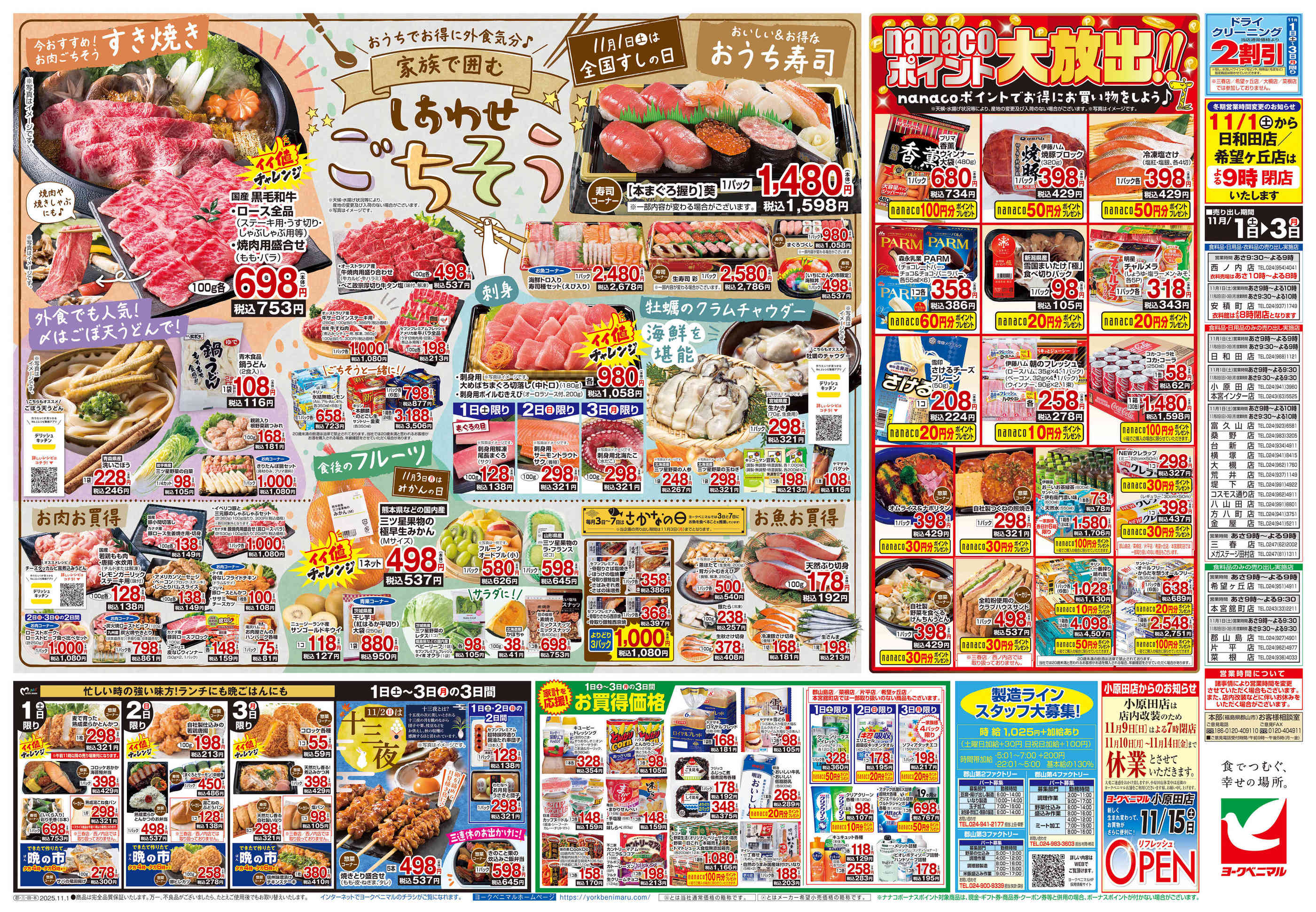 ヨークベニマル菜根店今週のチラシ(2025年11月3日〜11月9日)