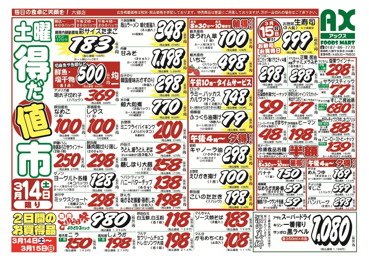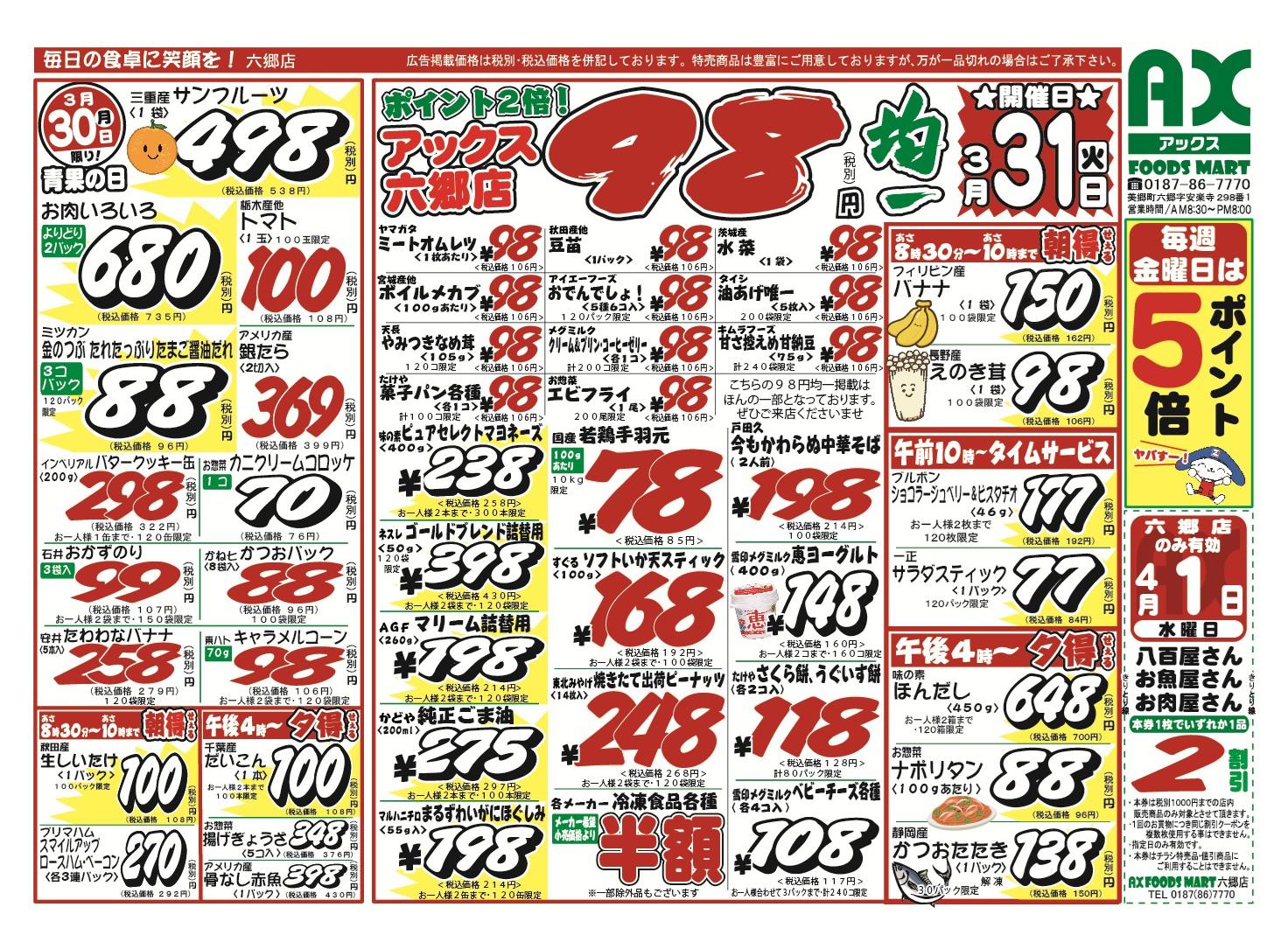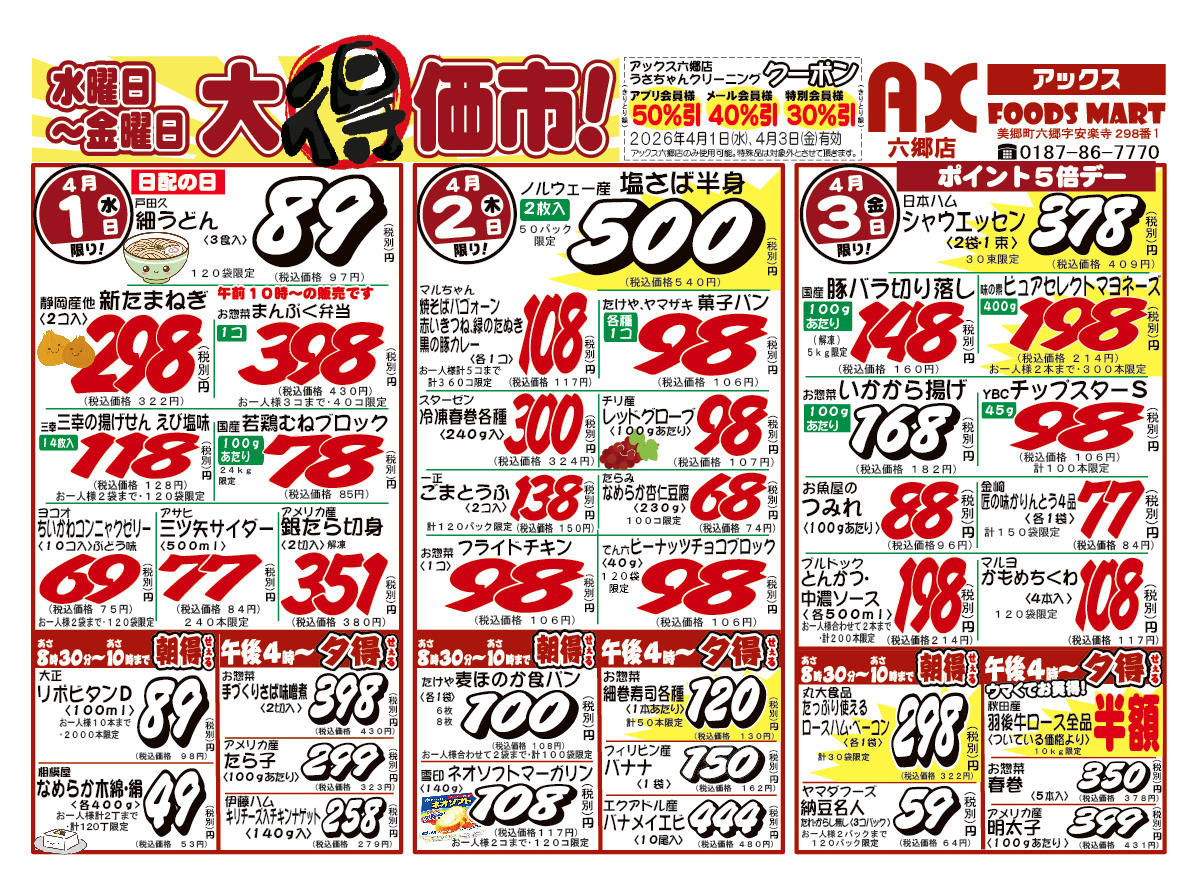 アックスフーズマート 六郷店今週のチラシ(2026年3月30日〜4月5日)