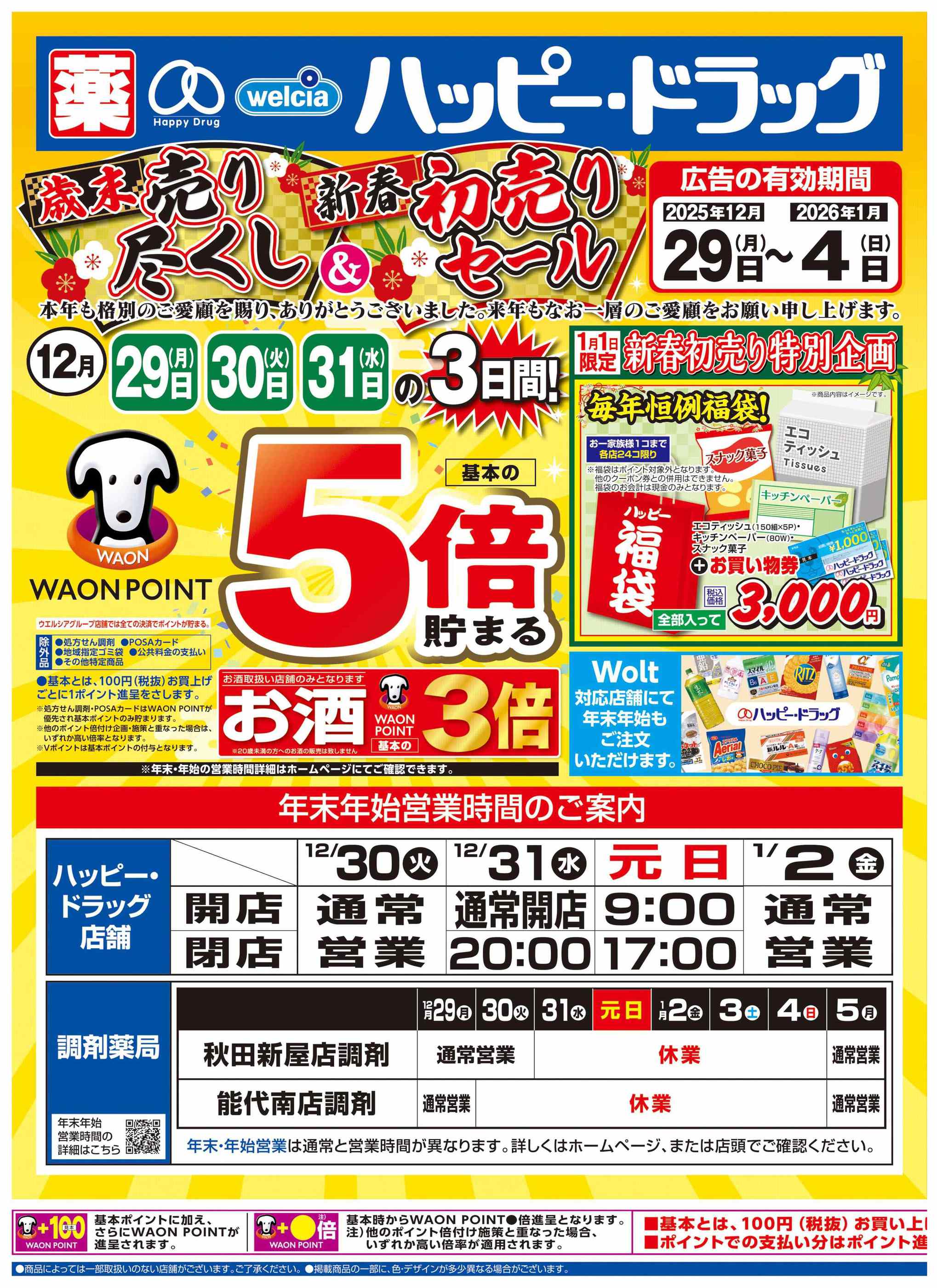 ハッピー・ドラッグ大館片山店今週のチラシ(2025年12月29日〜1月4日)