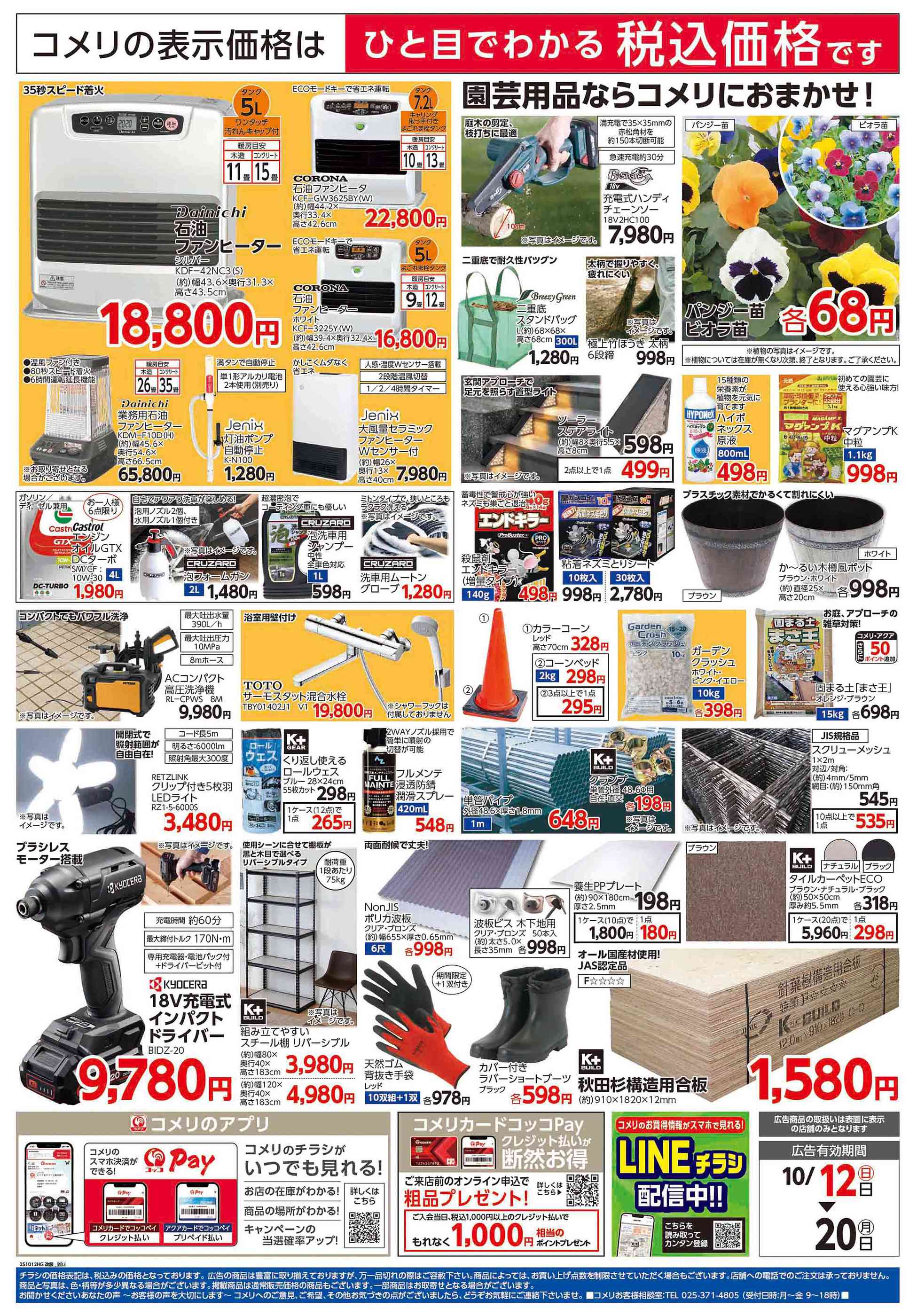 コメリハード&グリーン増田店今週のチラシ(2025年10月13日〜10月19日)