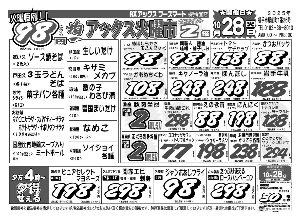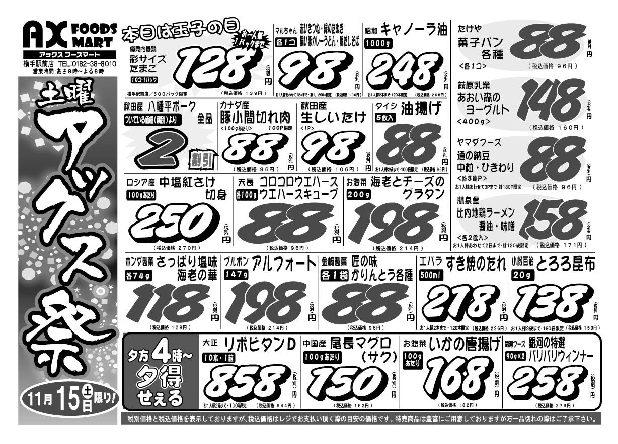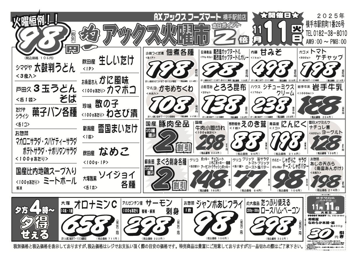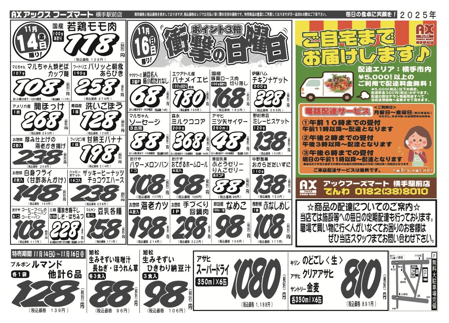 アックスフーズマート 横手駅前店今週のチラシ(2025年11月10日〜11月16日)
