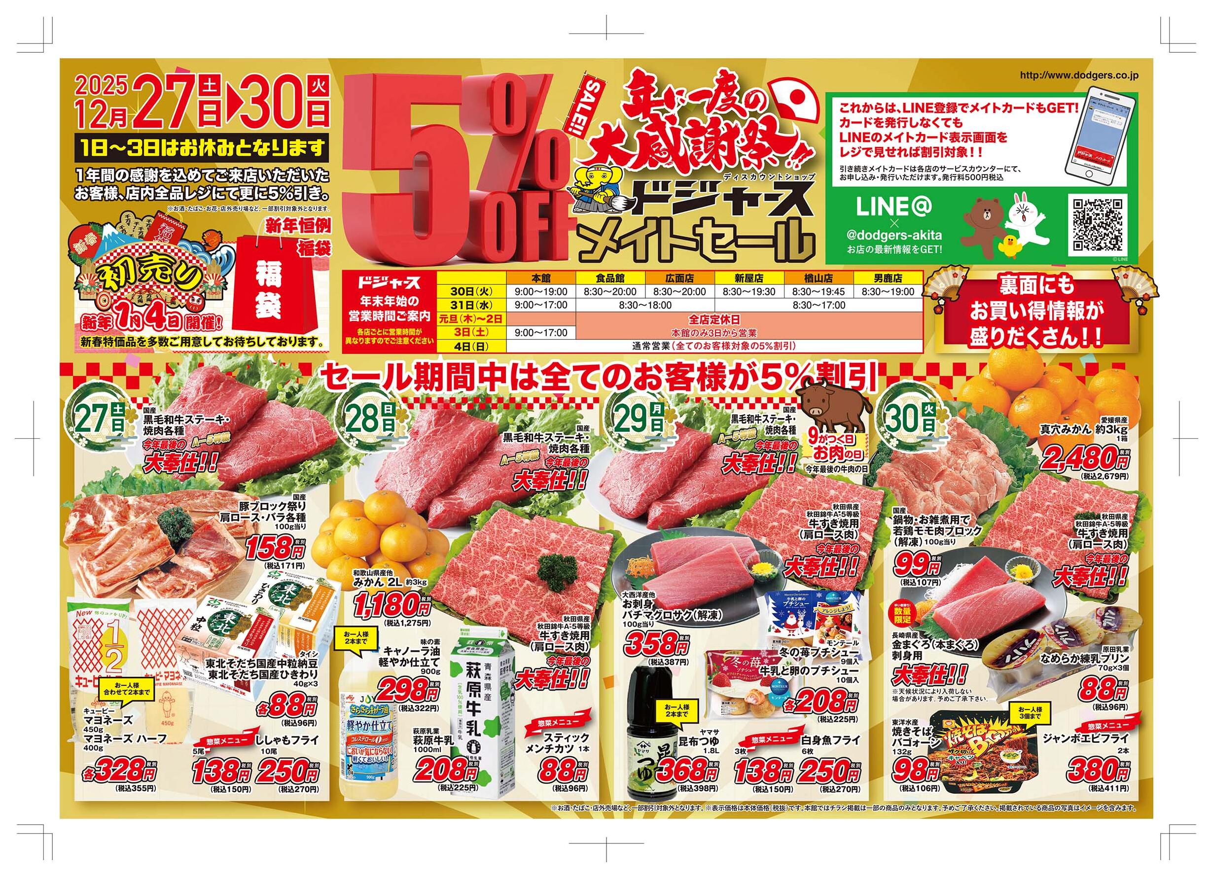 ドジャース新屋店今週のチラシ(2025年12月29日〜1月4日)