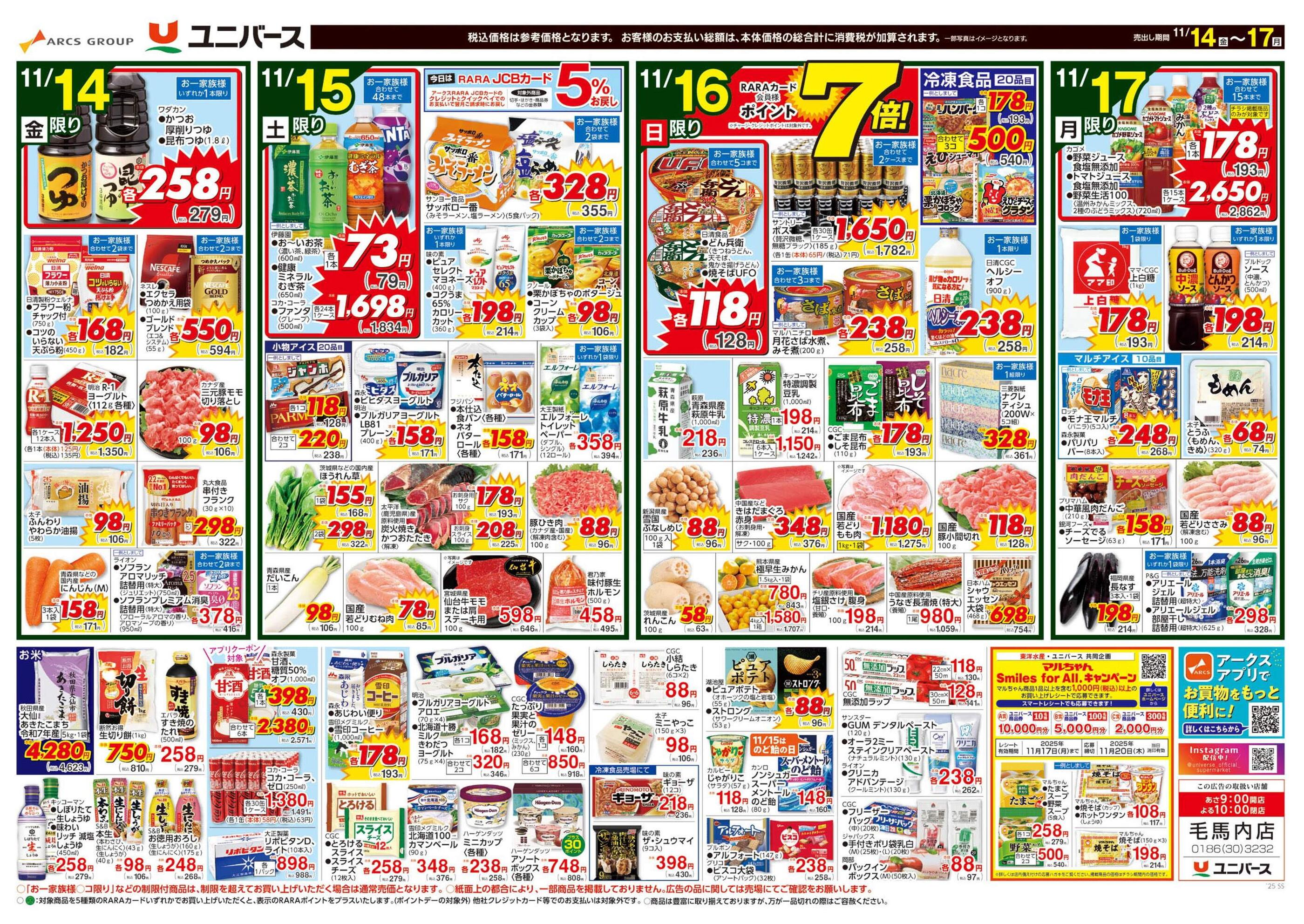 ユニバース毛馬内店今週のチラシ(2025年11月17日〜11月23日)