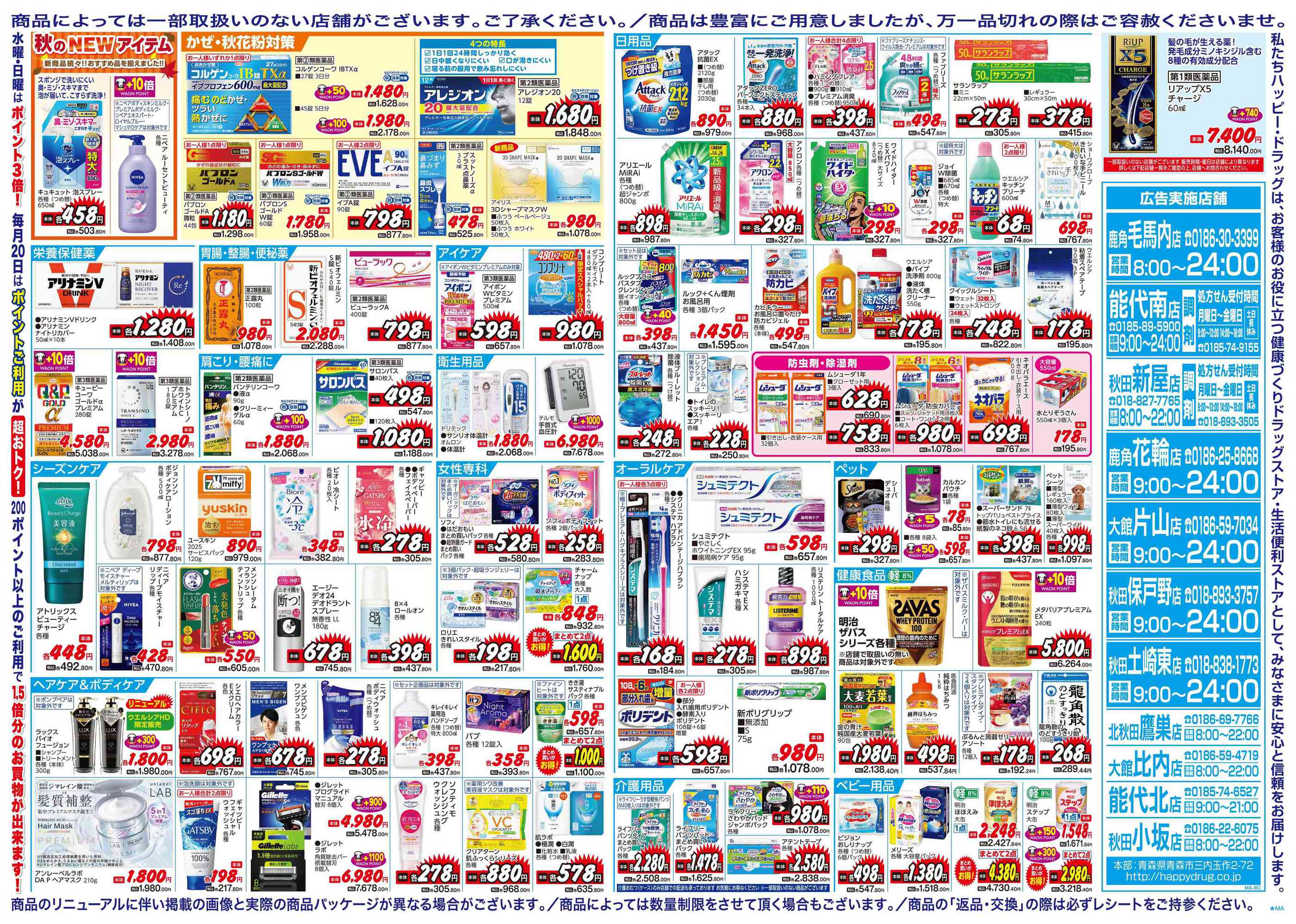 ハッピー・ドラッグ鹿角毛馬内店今週のチラシ(2025年9月29日〜10月5日)