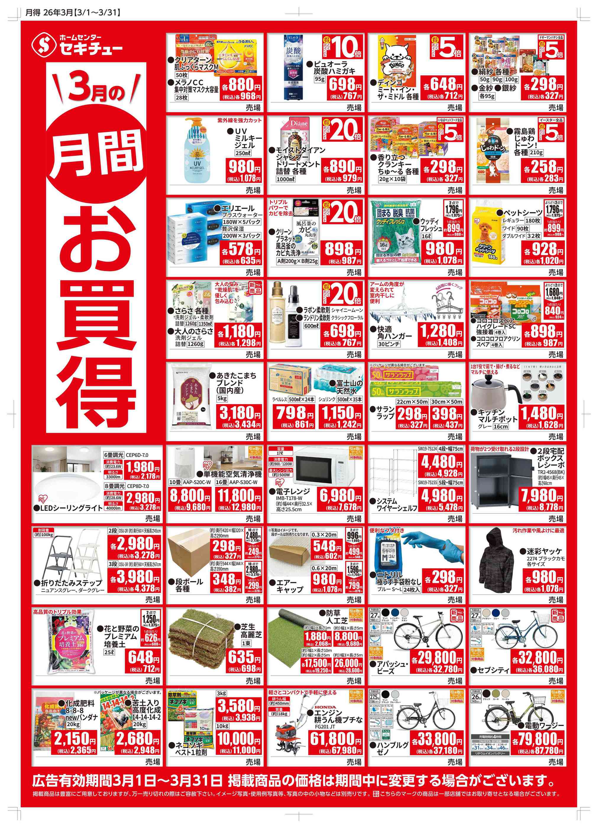 セキチュー伊勢崎茂呂店今週のチラシ(2026年3月9日〜3月15日)