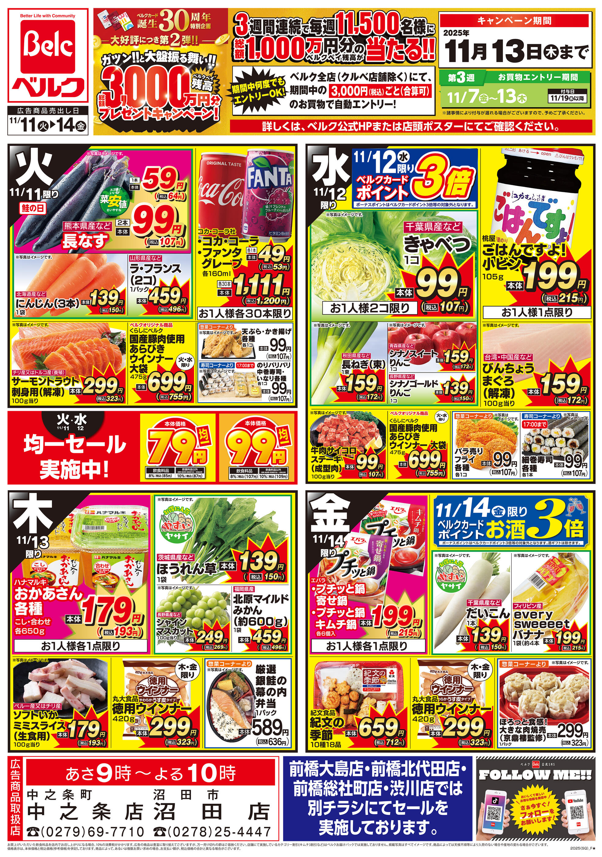 ベルク中之条店今週のチラシ(2025年11月10日〜11月16日)