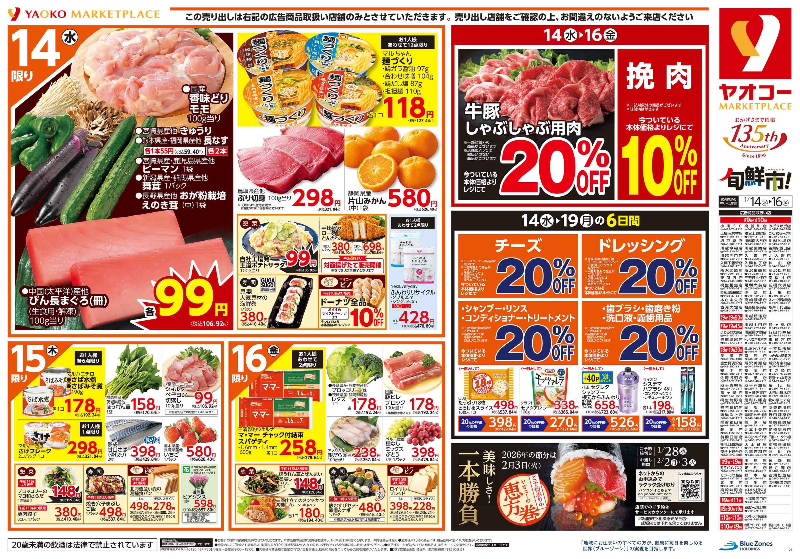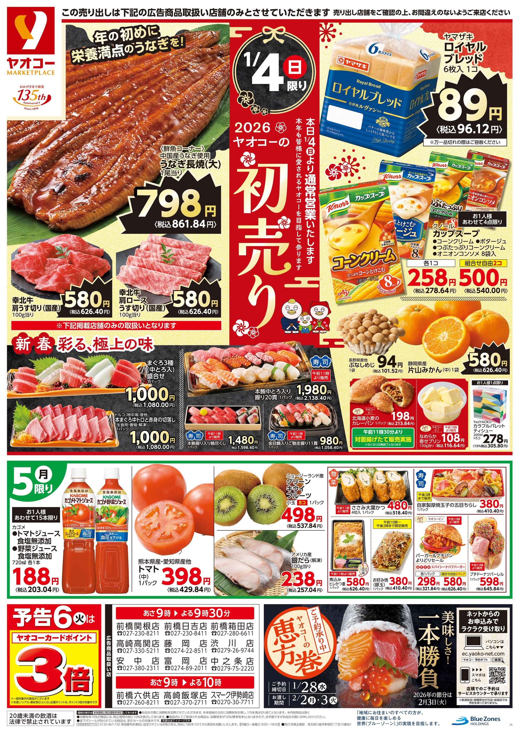 ヤオコー中之条店今週のチラシ(2026年1月12日〜1月18日)