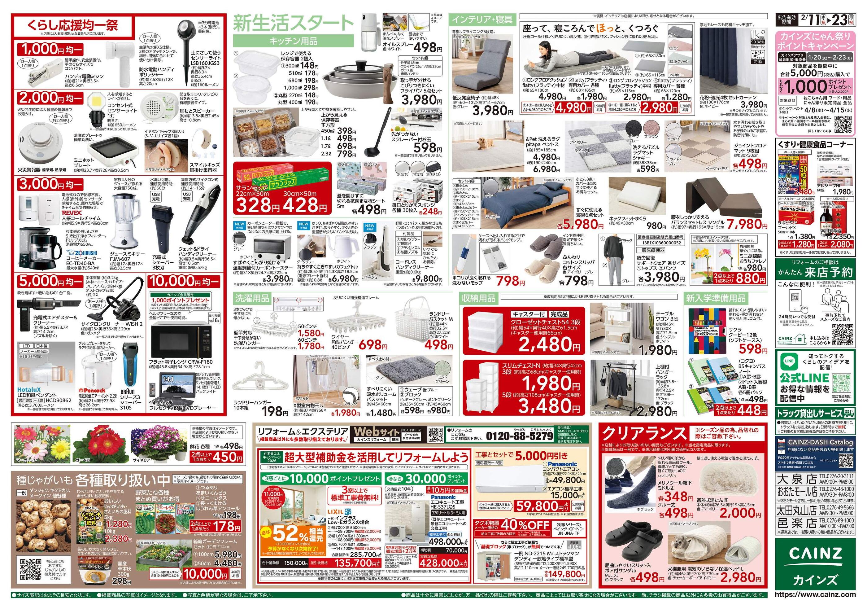 カインズおおたモール店今週のチラシ(2026年2月9日〜2月15日)