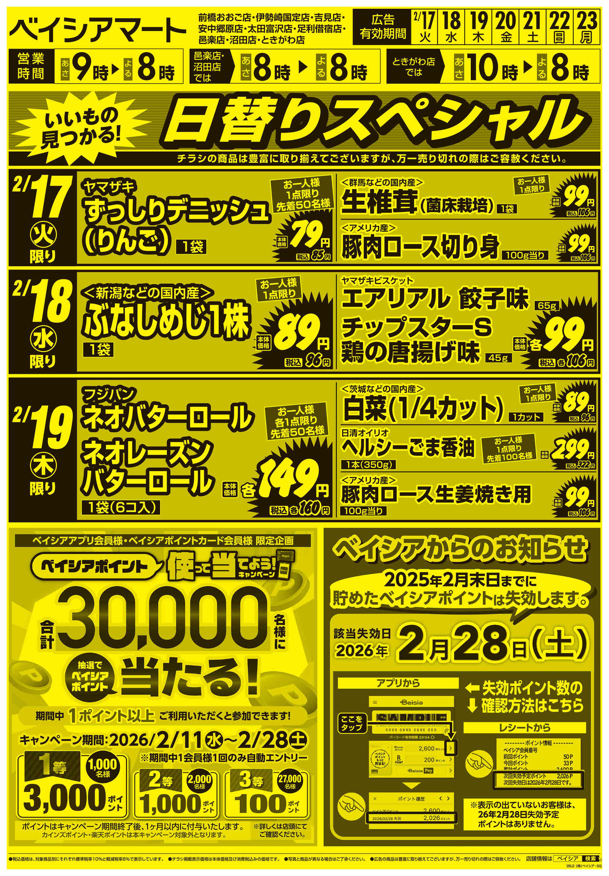 ベイシアマート太田富沢店今週のチラシ(2026年2月16日〜2月22日)