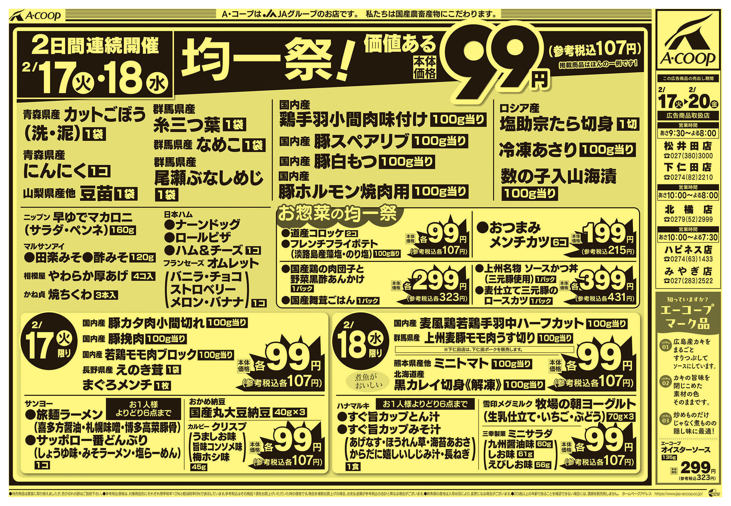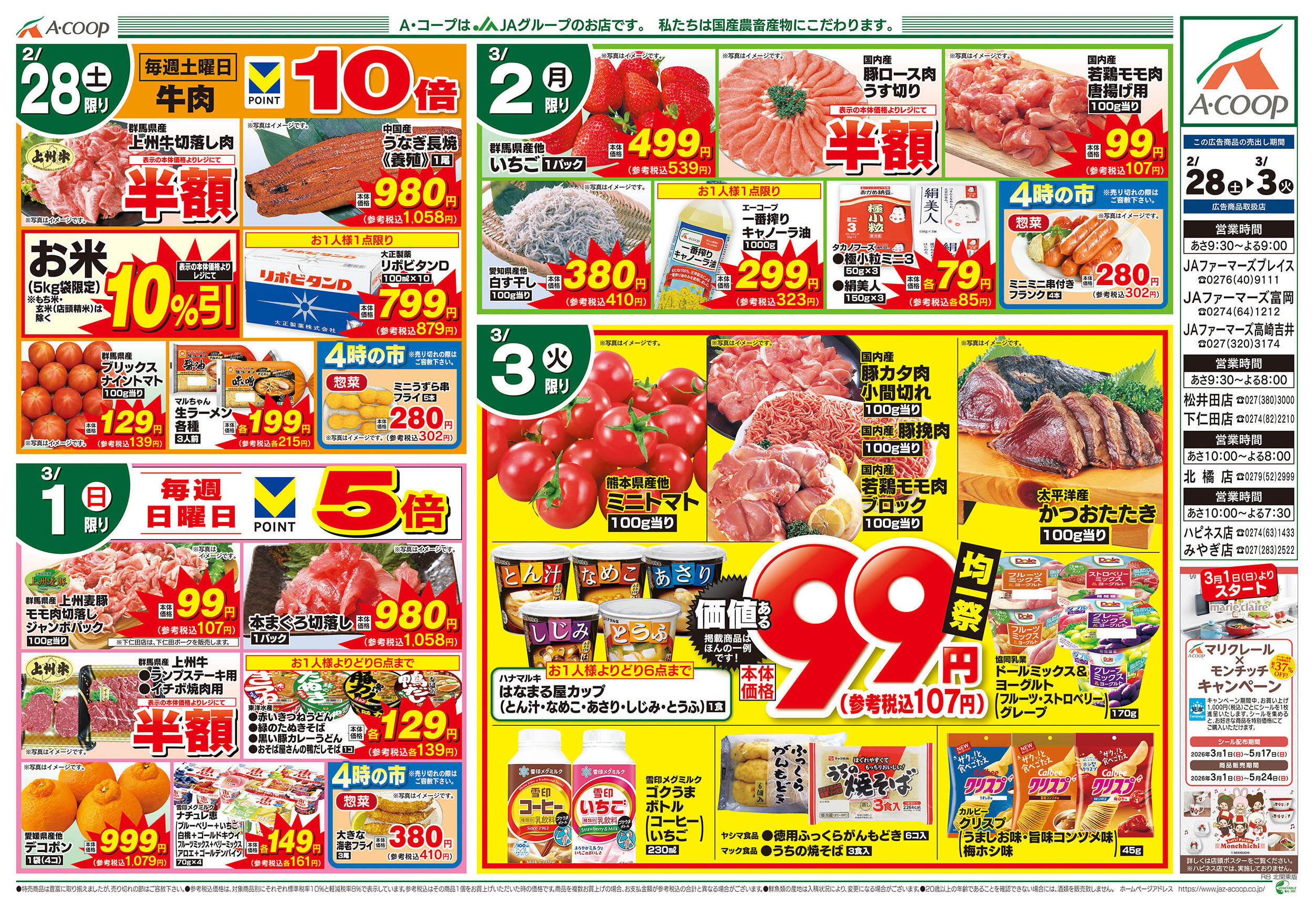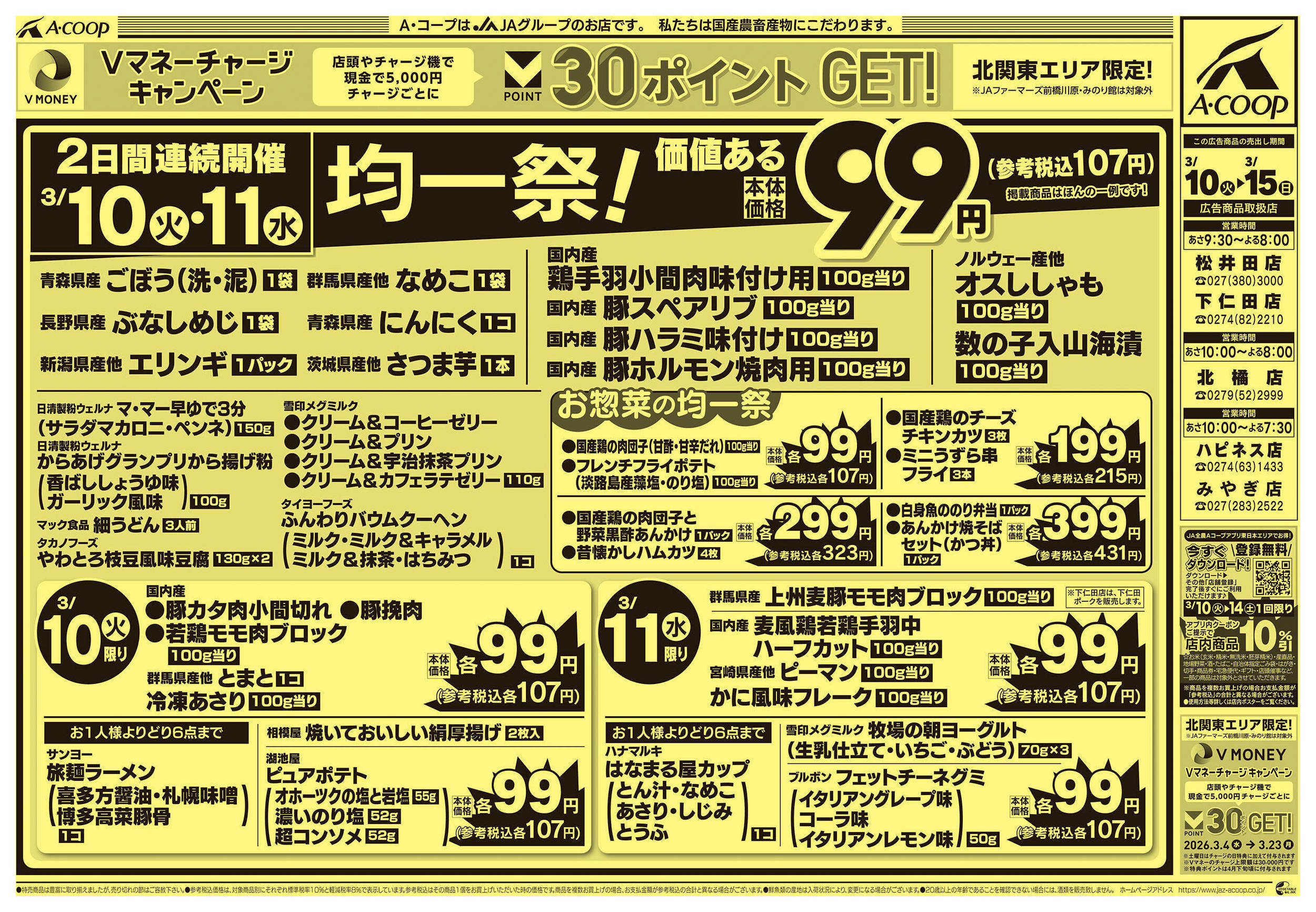 Aコープハピネス店今週のチラシ(2026年3月9日〜3月15日)