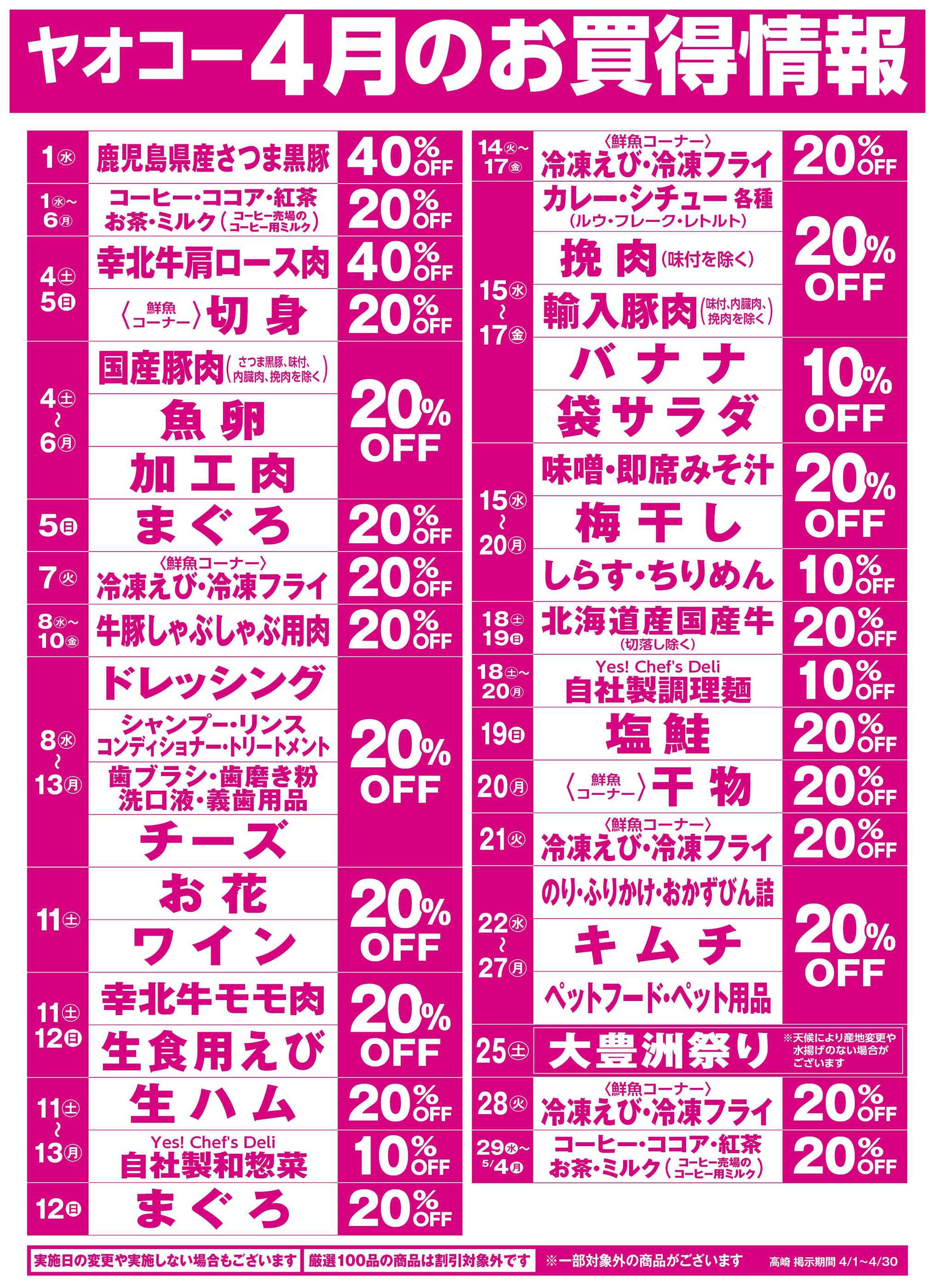 ヤオコー渋川店今週のチラシ(2026年3月30日〜4月5日)