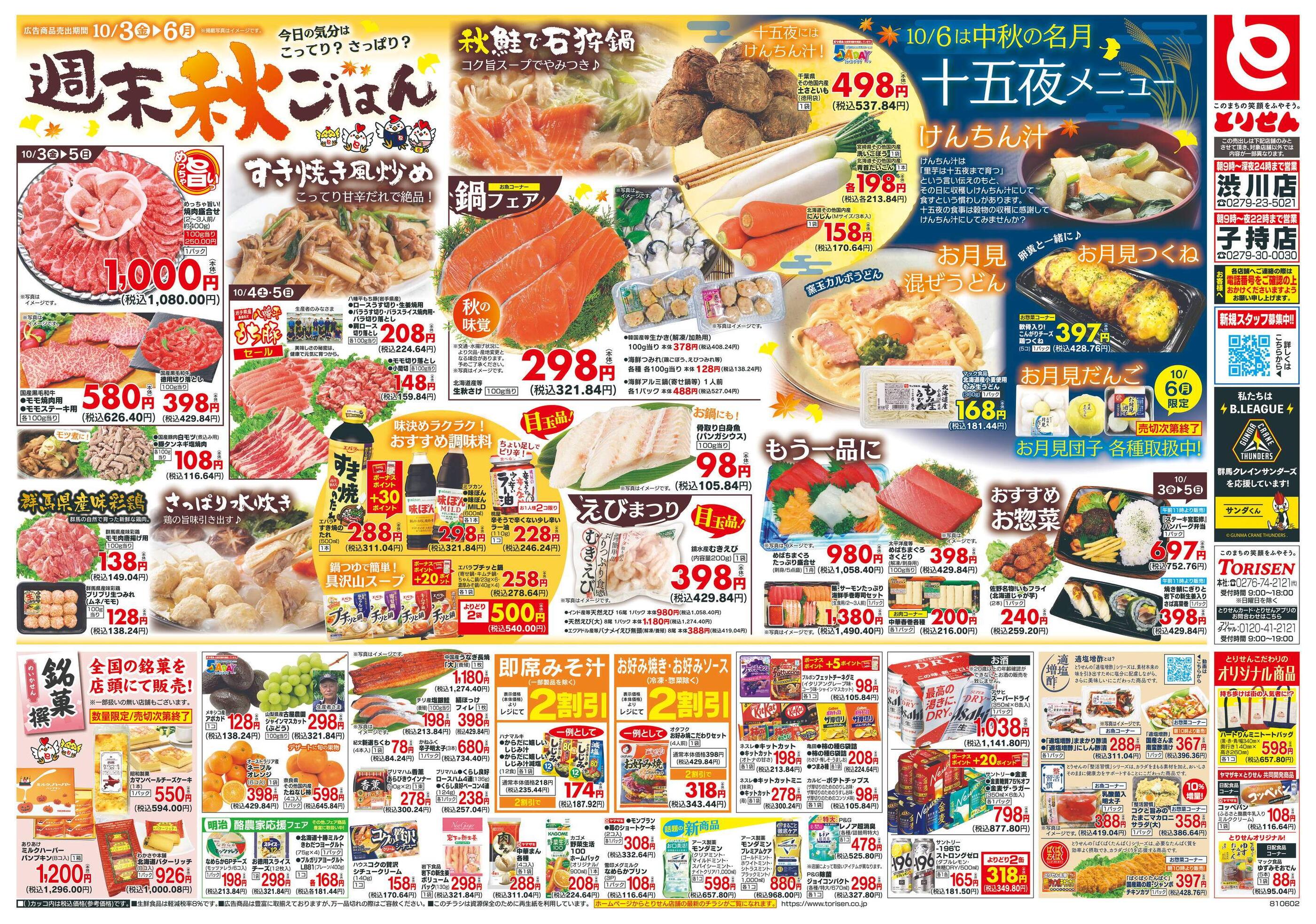とりせん子持店今週のチラシ(2025年9月29日〜10月5日)