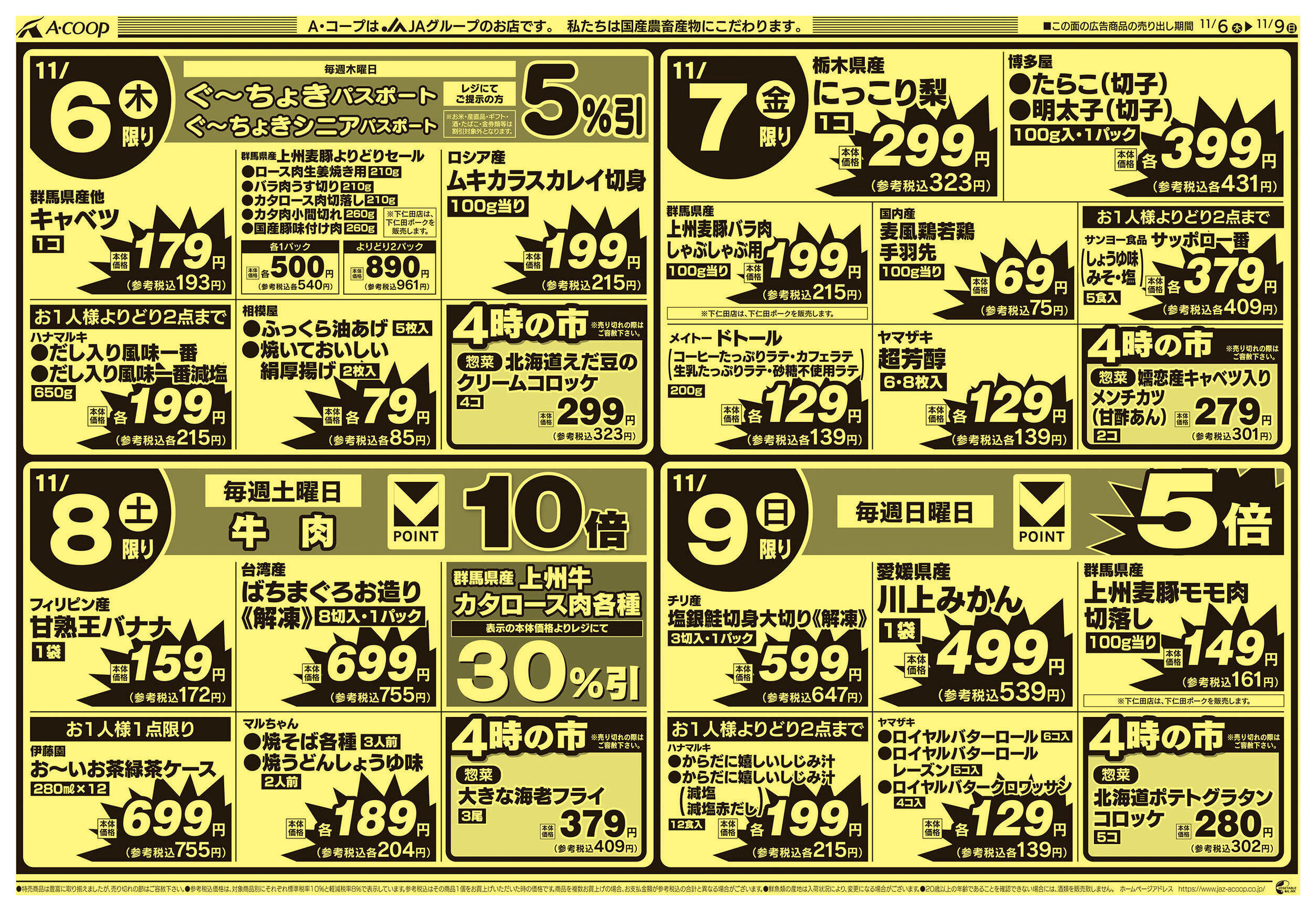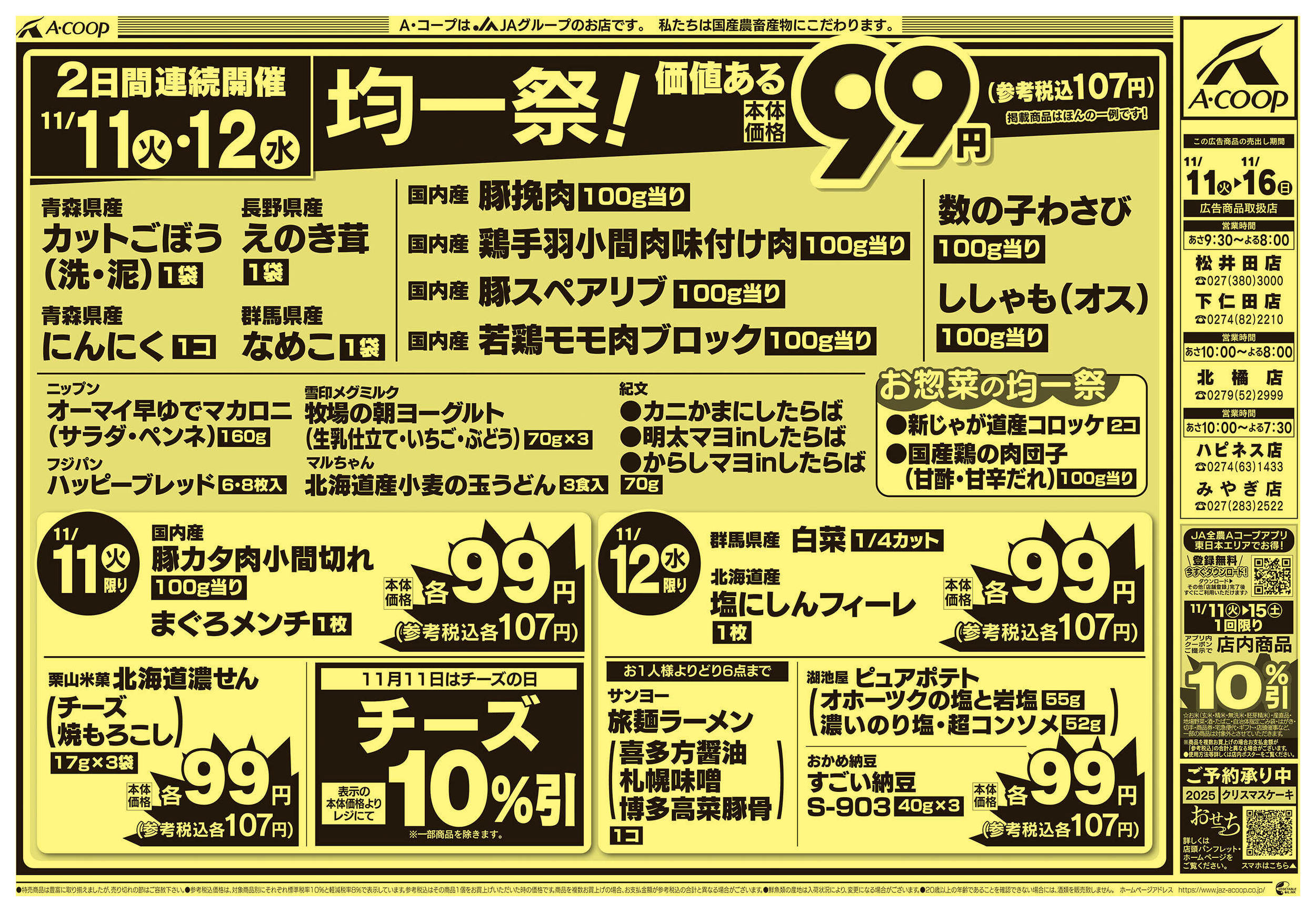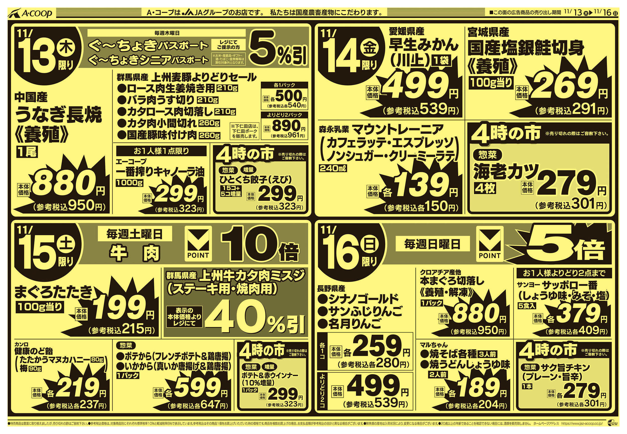 Aコープ下仁田店今週のチラシ(2025年11月10日〜11月16日)