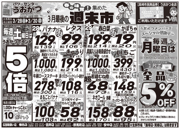 特売やセール情報など最新のチラシを掲載中。(3種類、5枚のチラシを掲載しています)