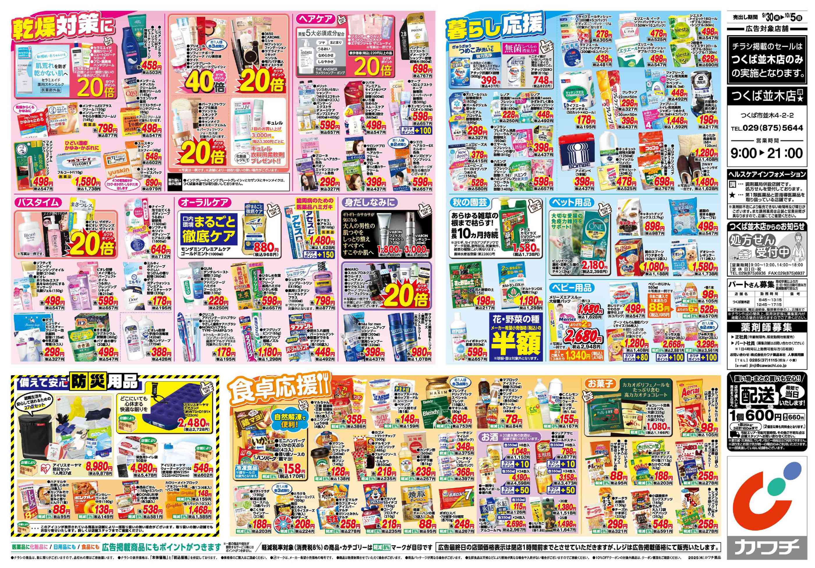 カワチ薬品つくば並木店今週のチラシ(2025年9月29日〜10月5日)