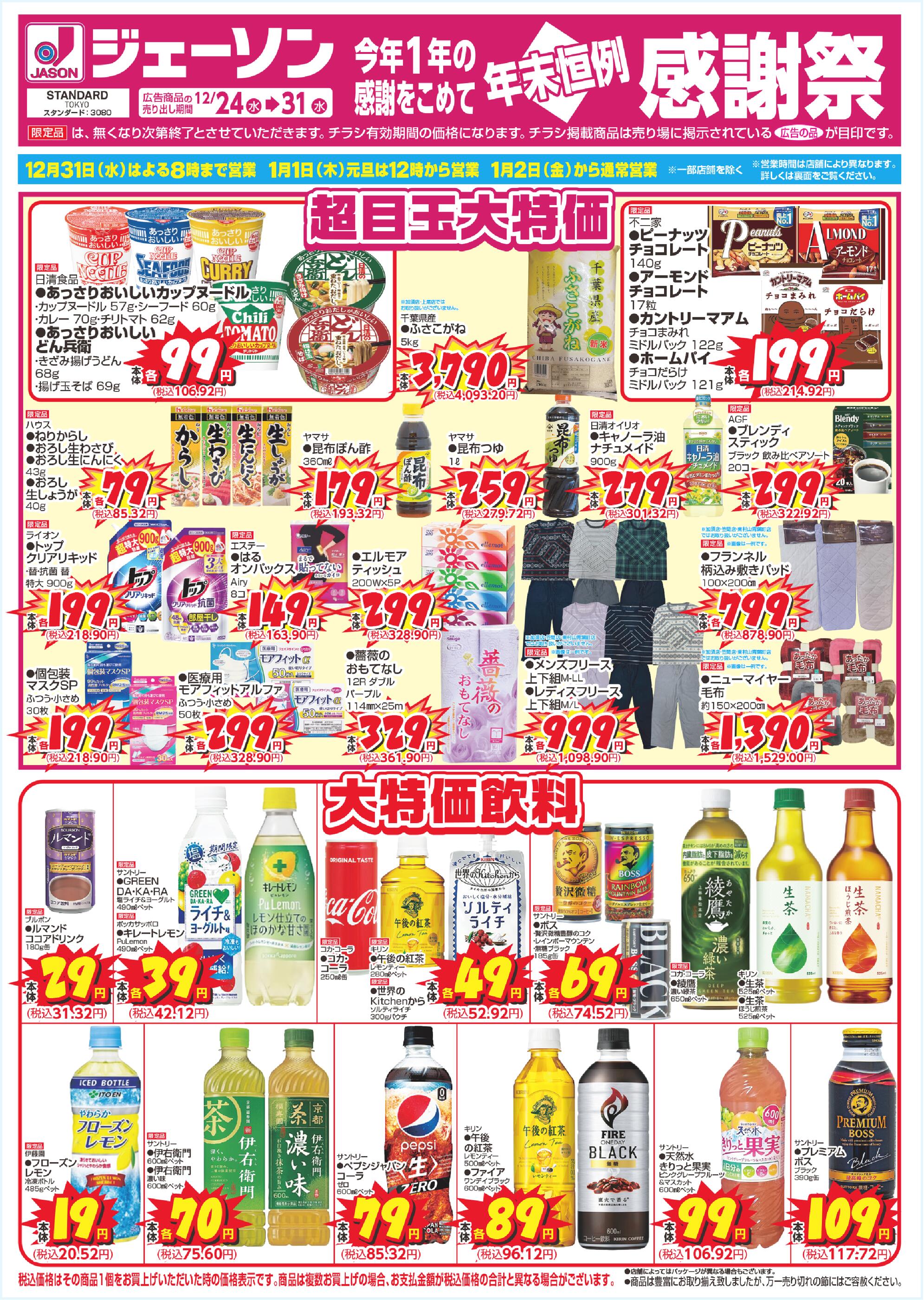 ジェーソン新取手店今週のチラシ(2025年12月22日〜12月28日)