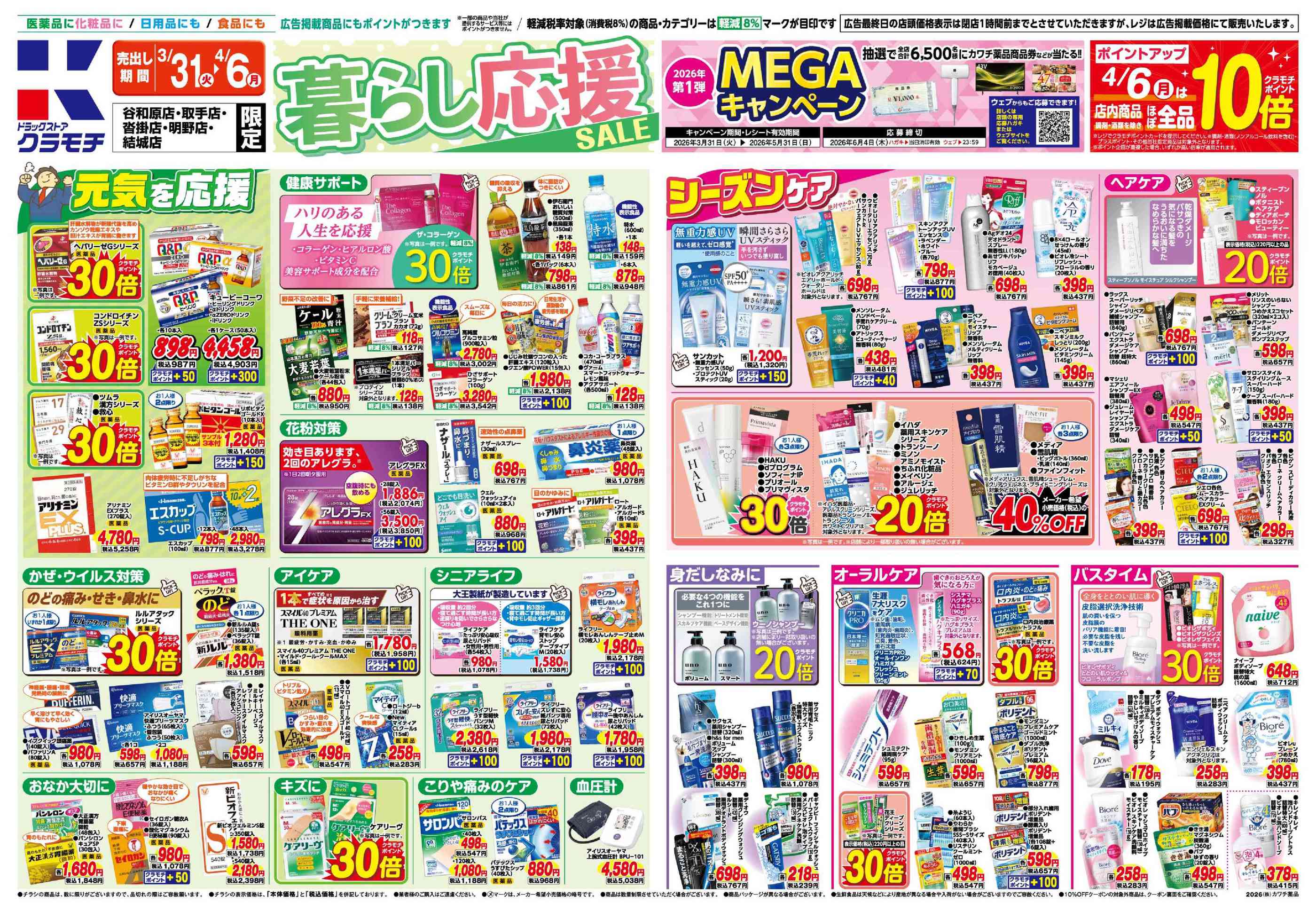 ドラッグストアクラモチ取手店今週のチラシ(2026年3月30日〜4月5日)