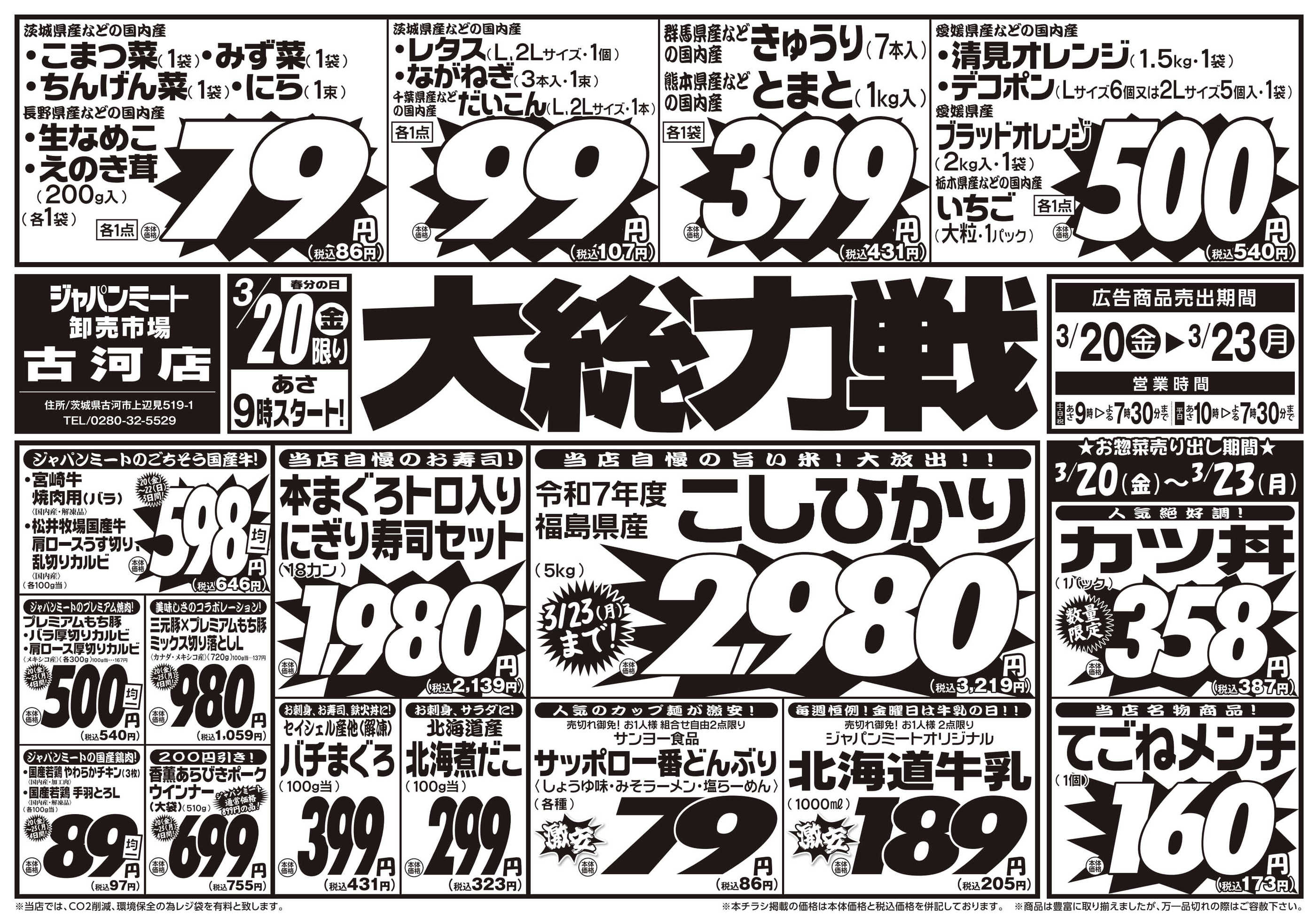 ジャパンミート卸売市場古河店今週のチラシ(2026年3月16日〜3月22日)
