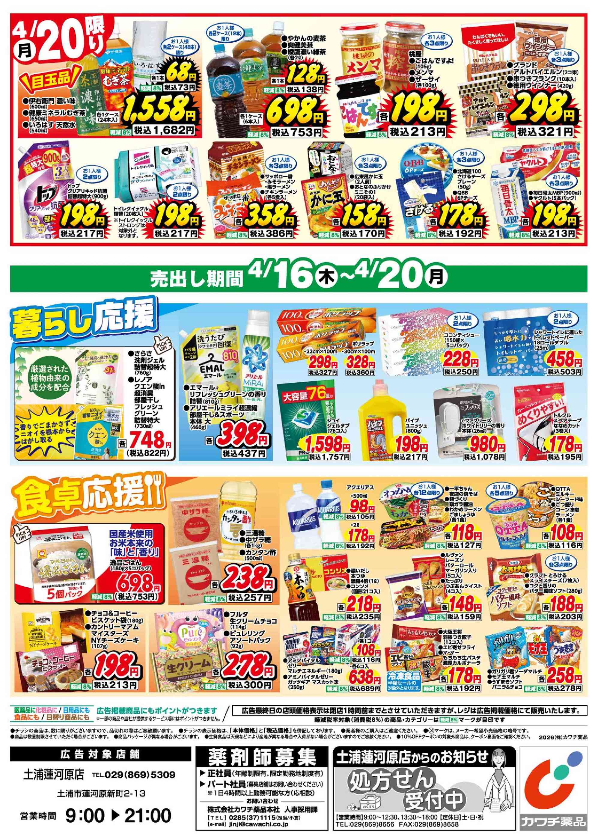 カワチ薬品土浦蓮河原店今週のチラシ(2026年4月13日〜4月19日)
