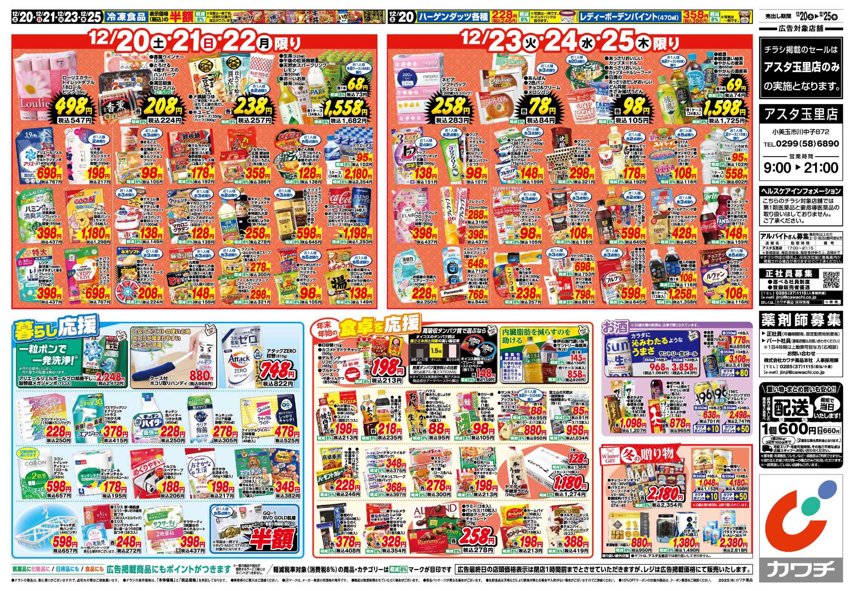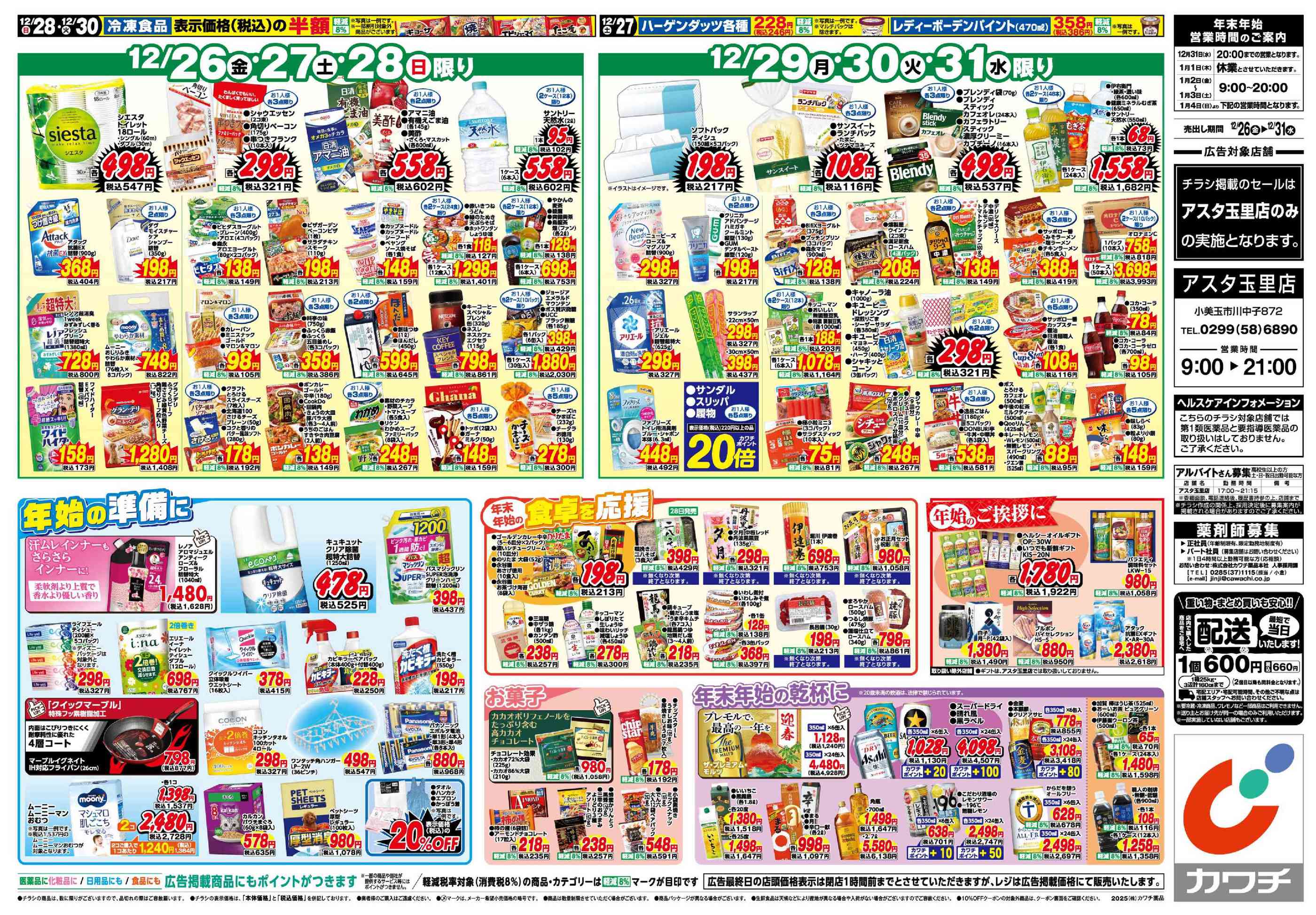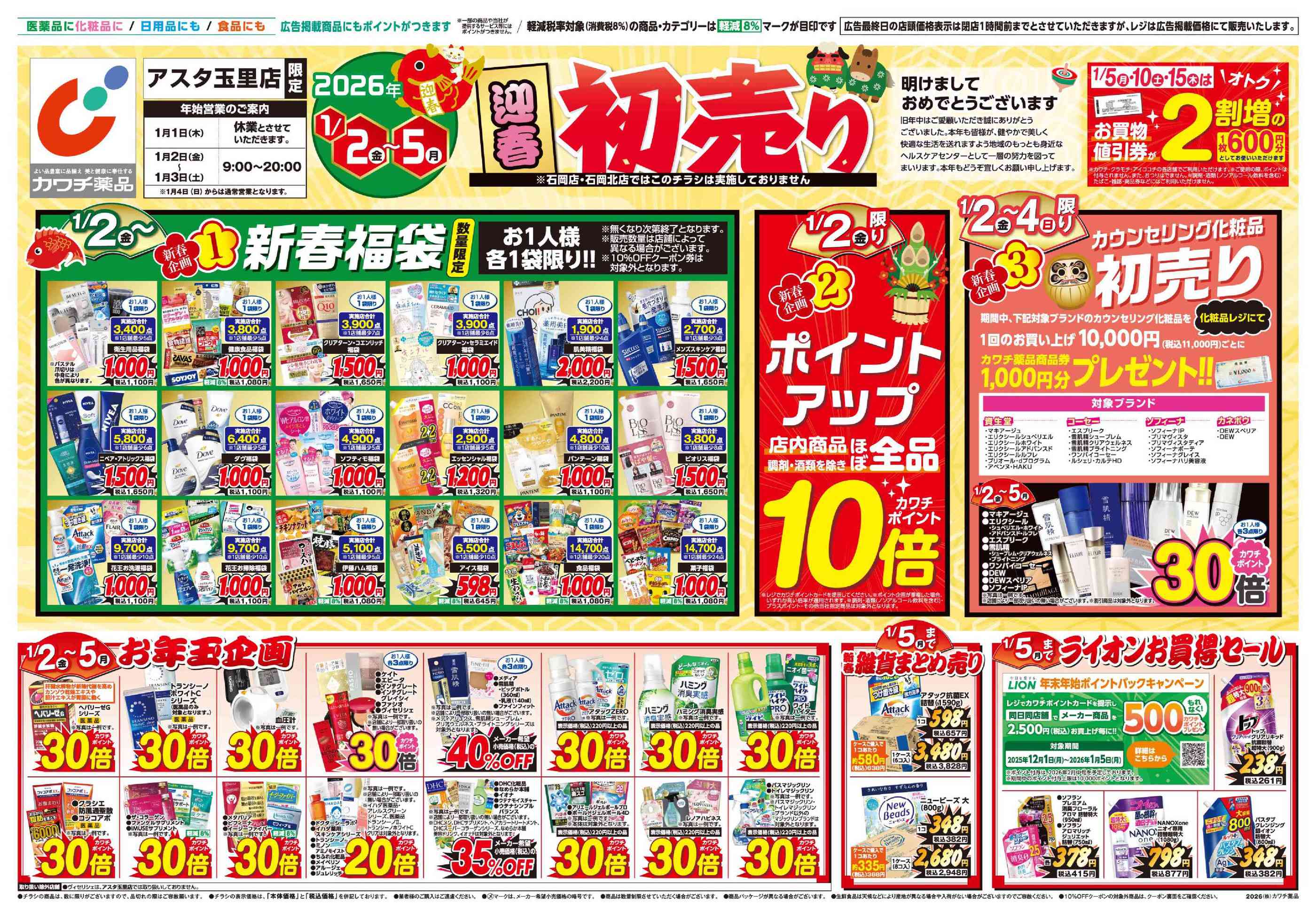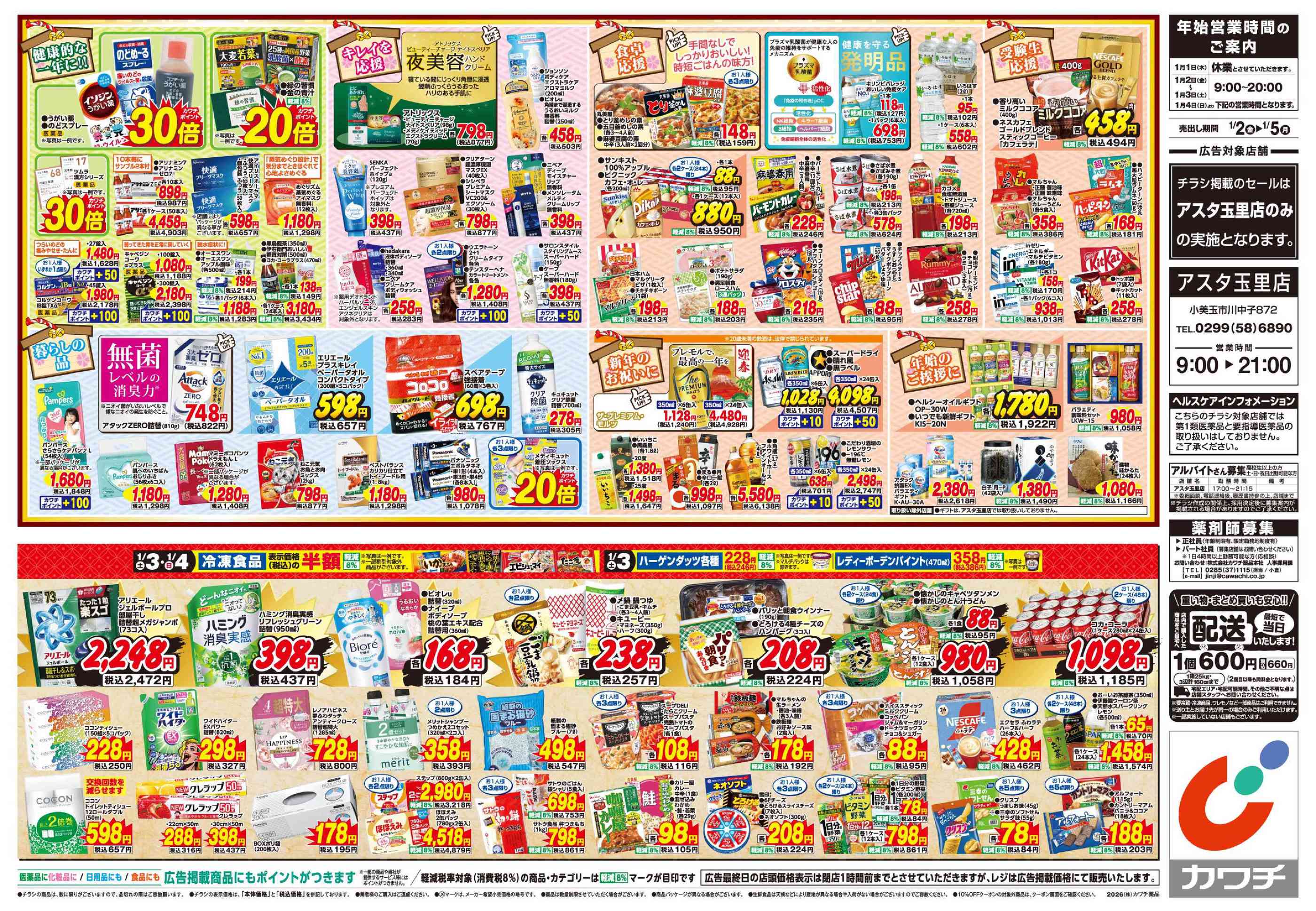 カワチ薬品アスタ玉里店今週のチラシ(2025年12月29日〜1月4日)