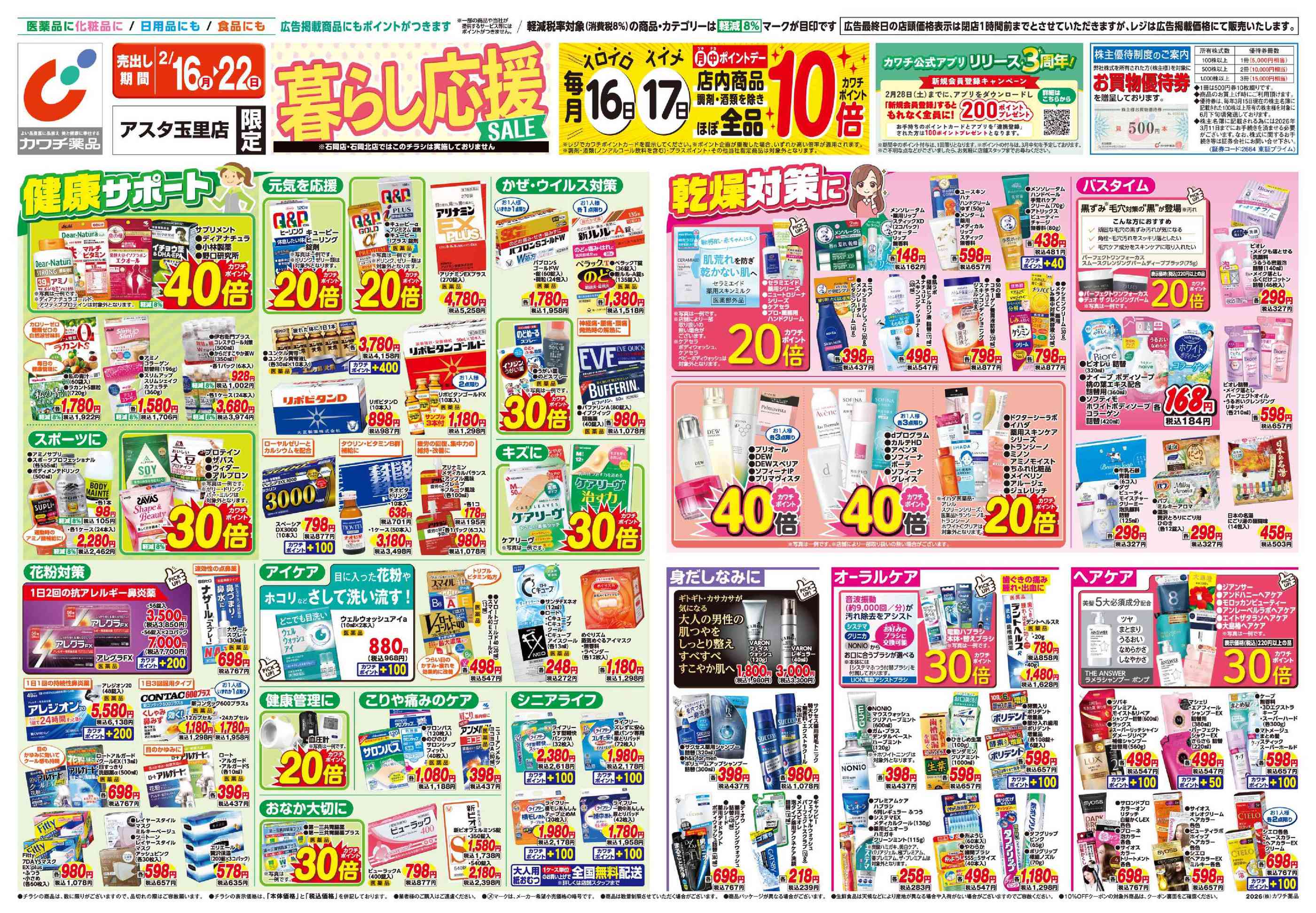 カワチ薬品アスタ玉里店今週のチラシ(2026年2月16日〜2月22日)