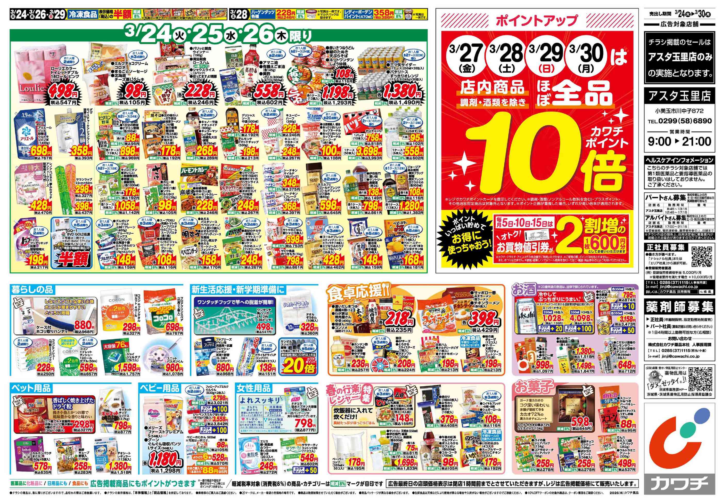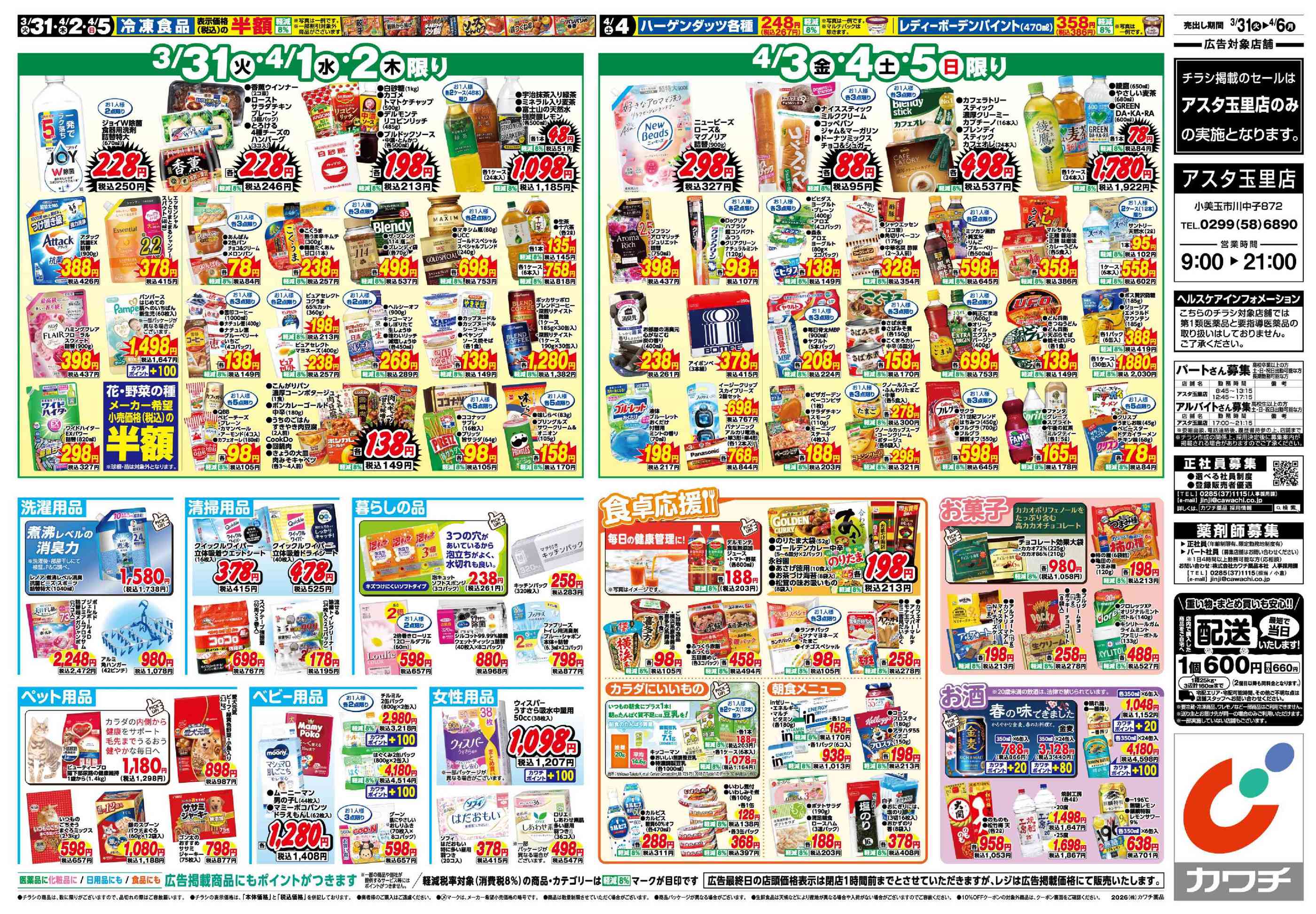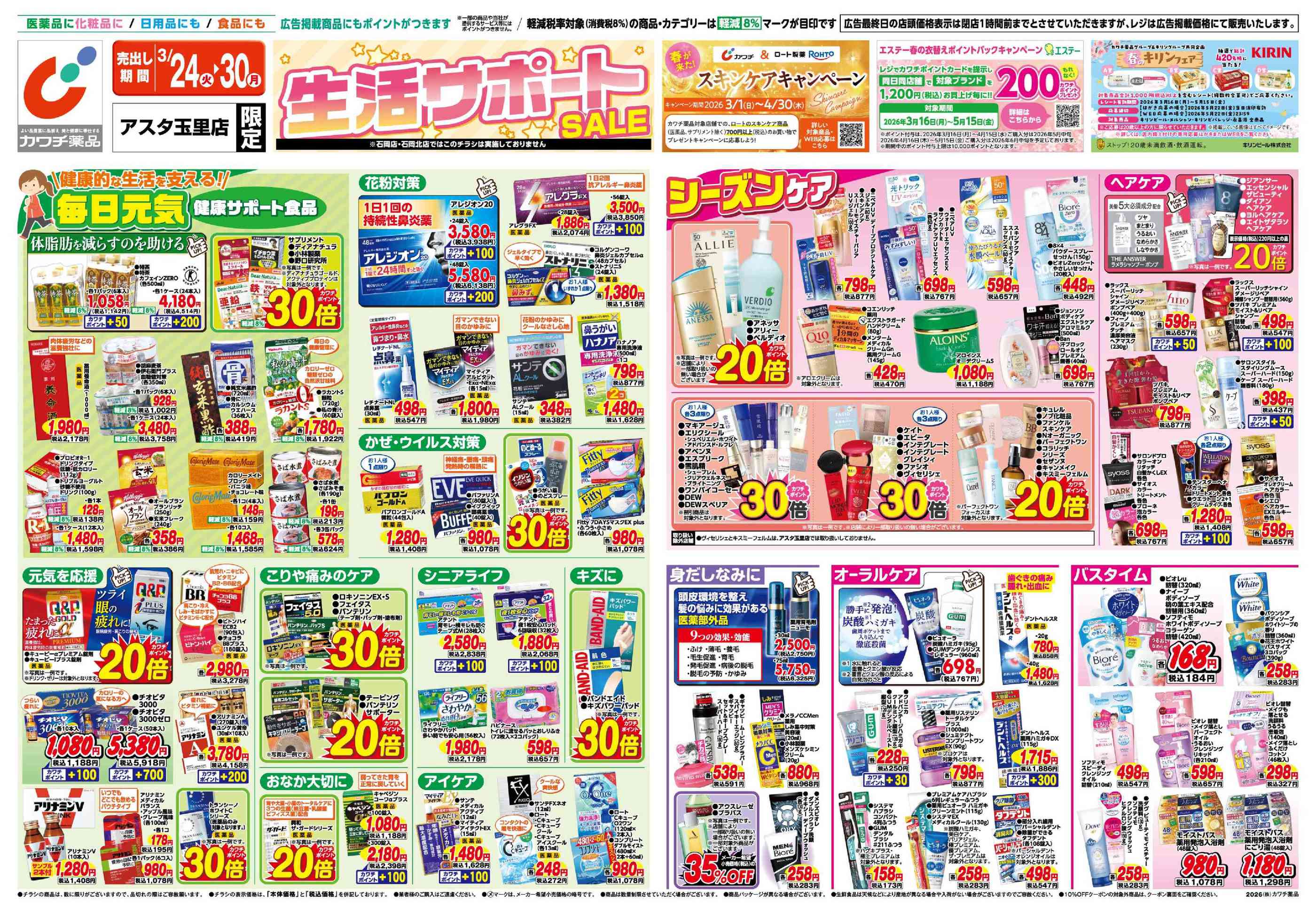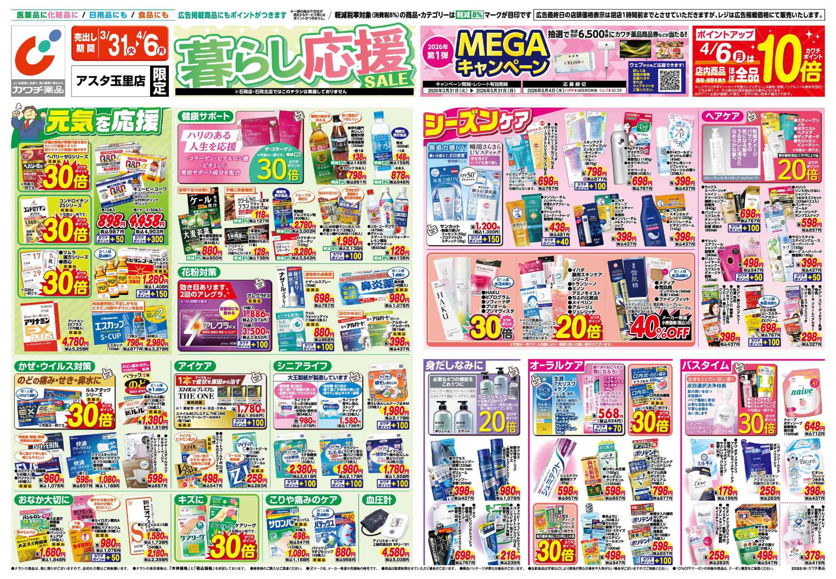 カワチ薬品アスタ玉里店今週のチラシ(2026年3月30日〜4月5日)