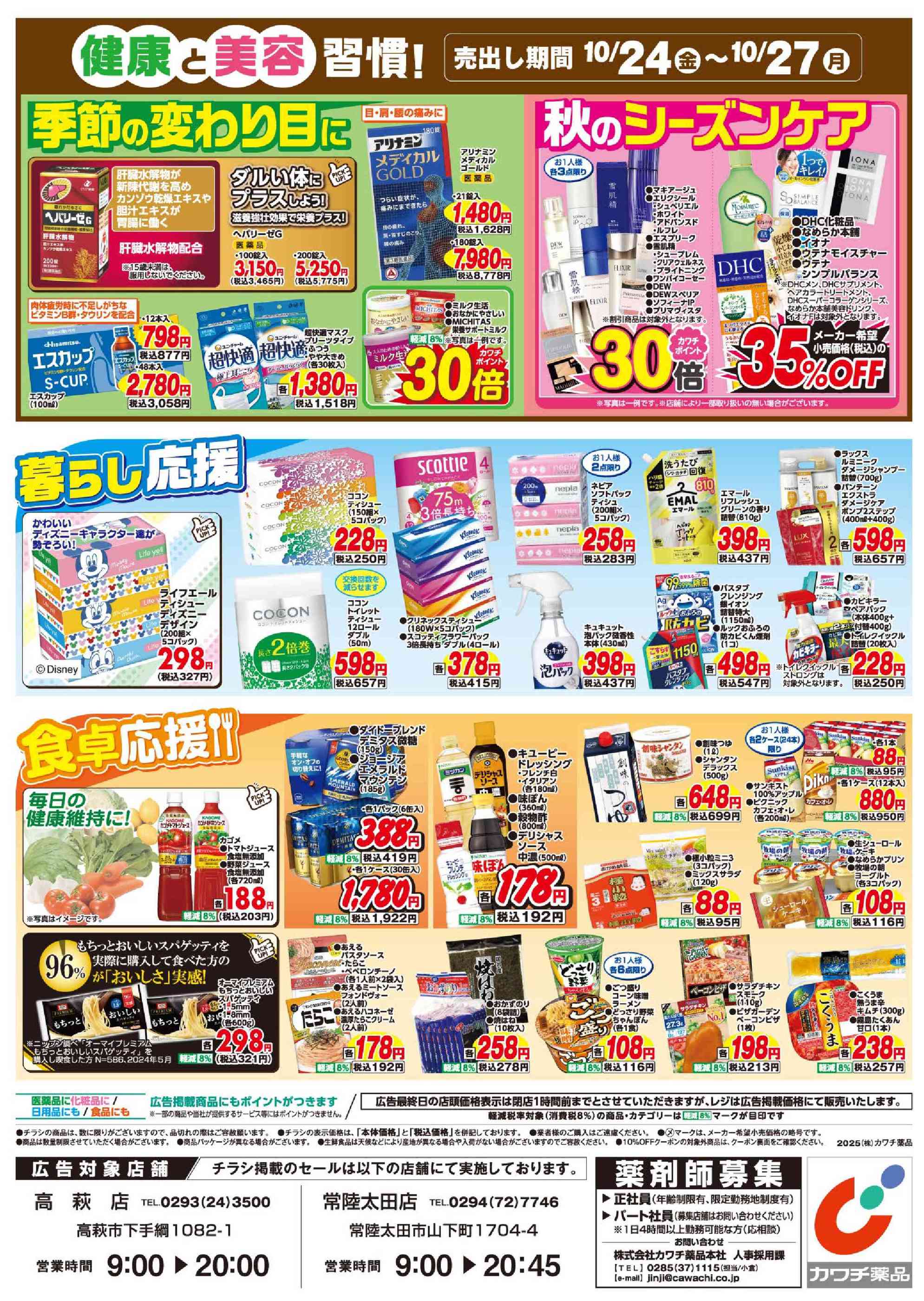 カワチ薬品常陸太田店今週のチラシ(2025年10月20日〜10月26日)