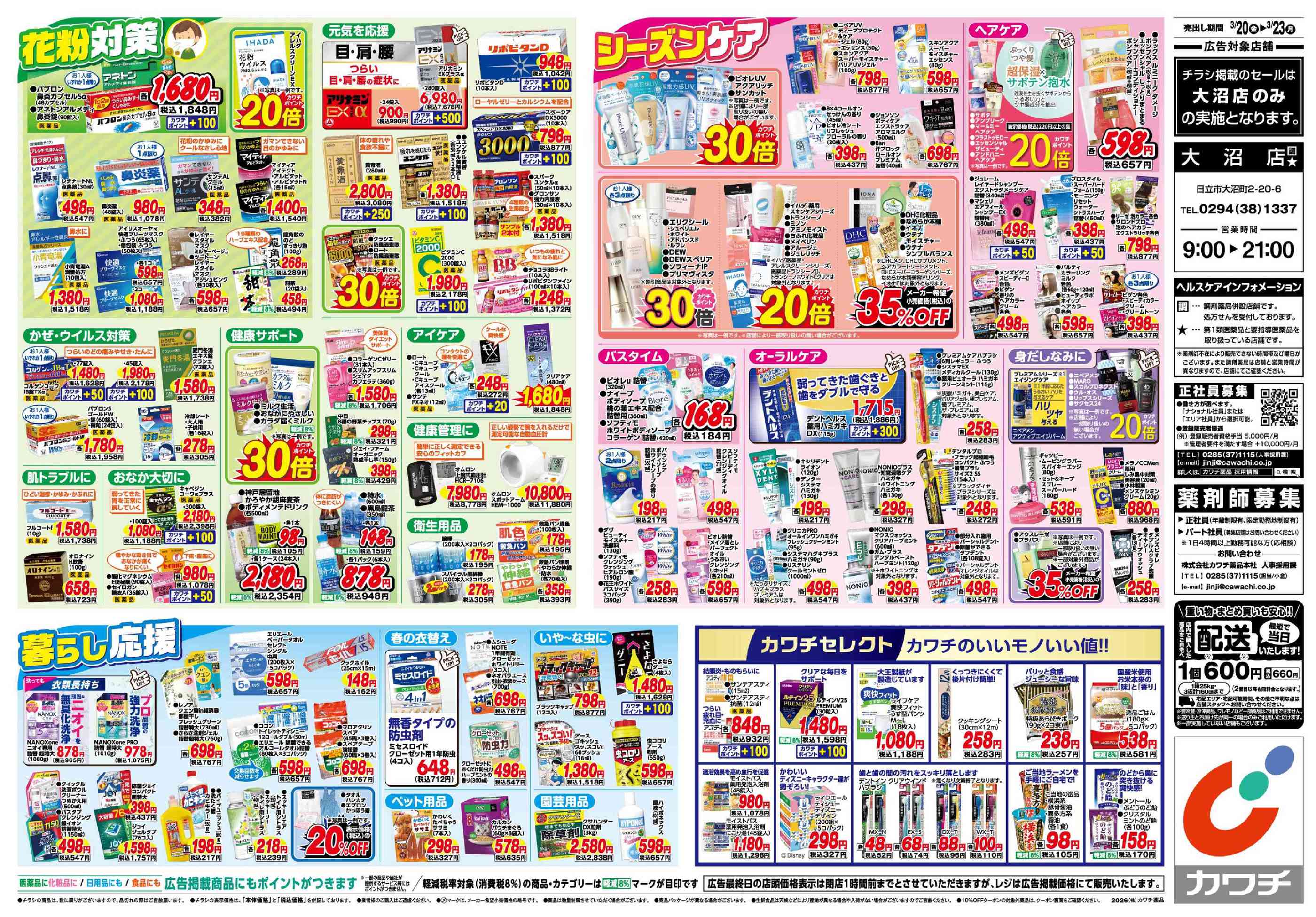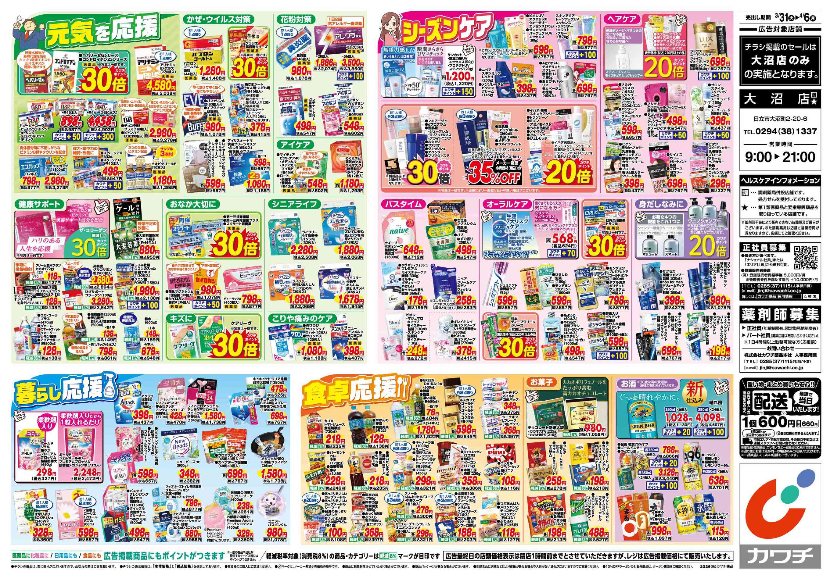 カワチ薬品大沼店今週のチラシ(2026年3月30日〜4月5日)