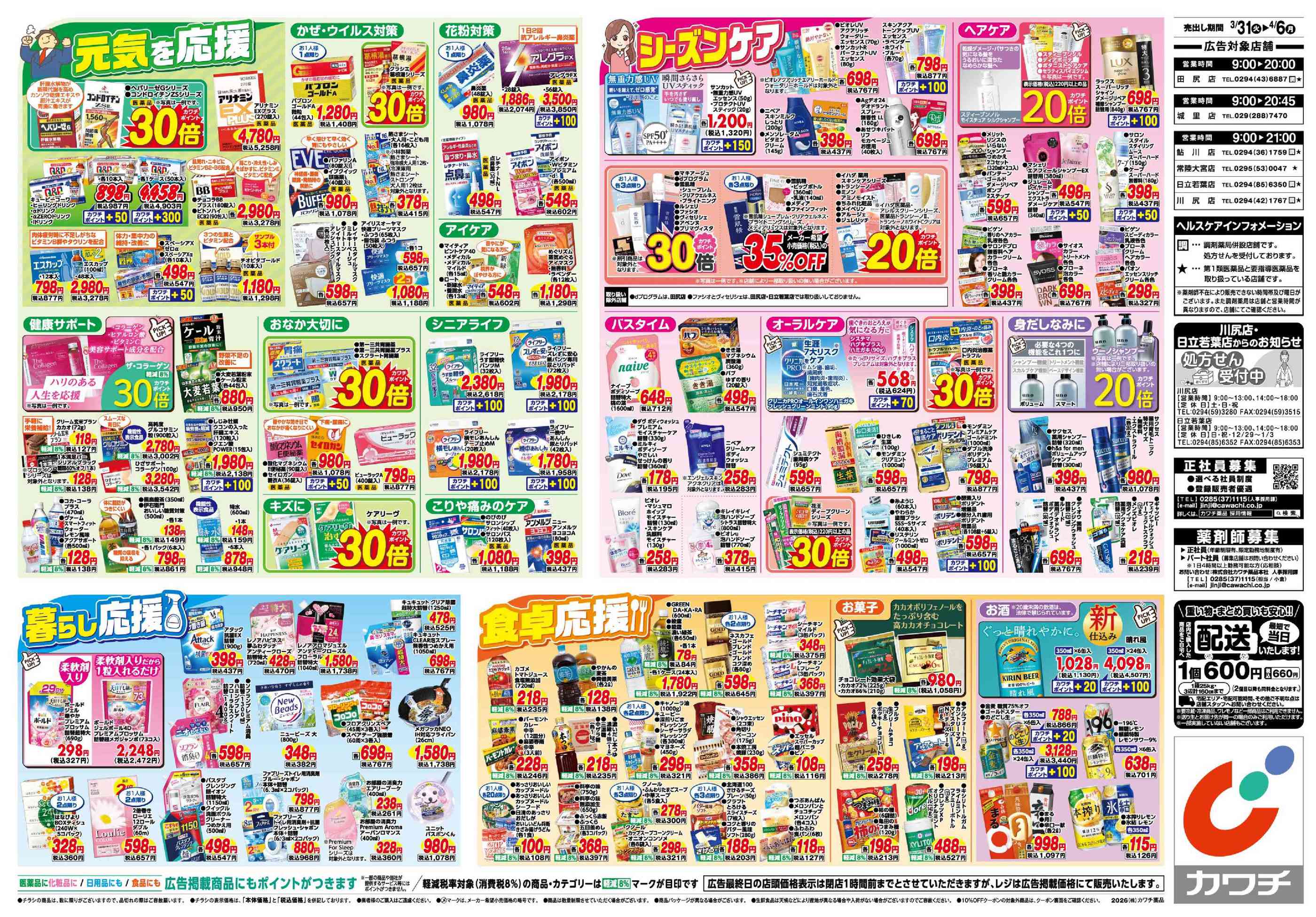 カワチ薬品鮎川店今週のチラシ(2026年3月30日〜4月5日)