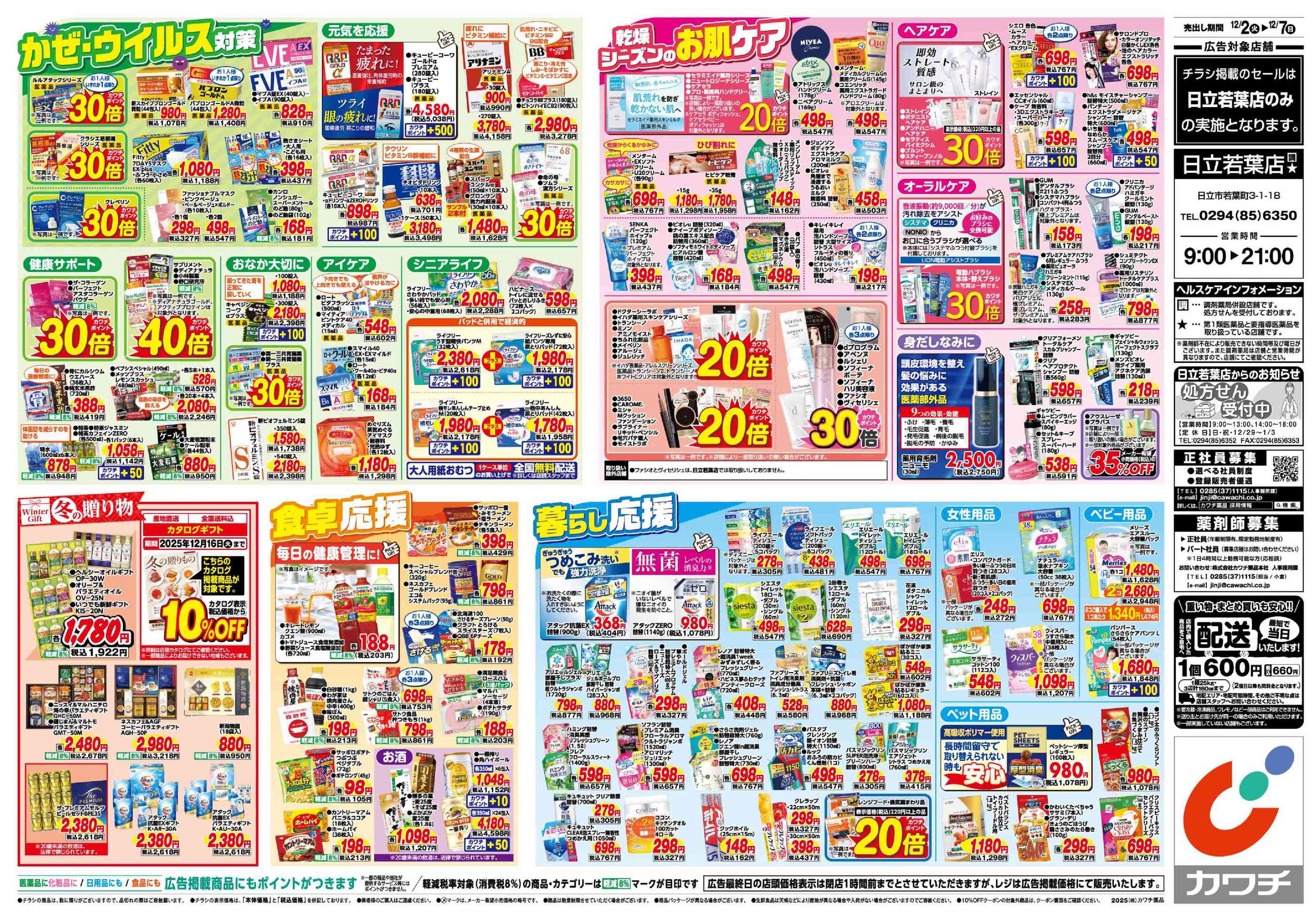 カワチ薬品日立若葉店今週のチラシ(2025年12月1日〜12月7日)
