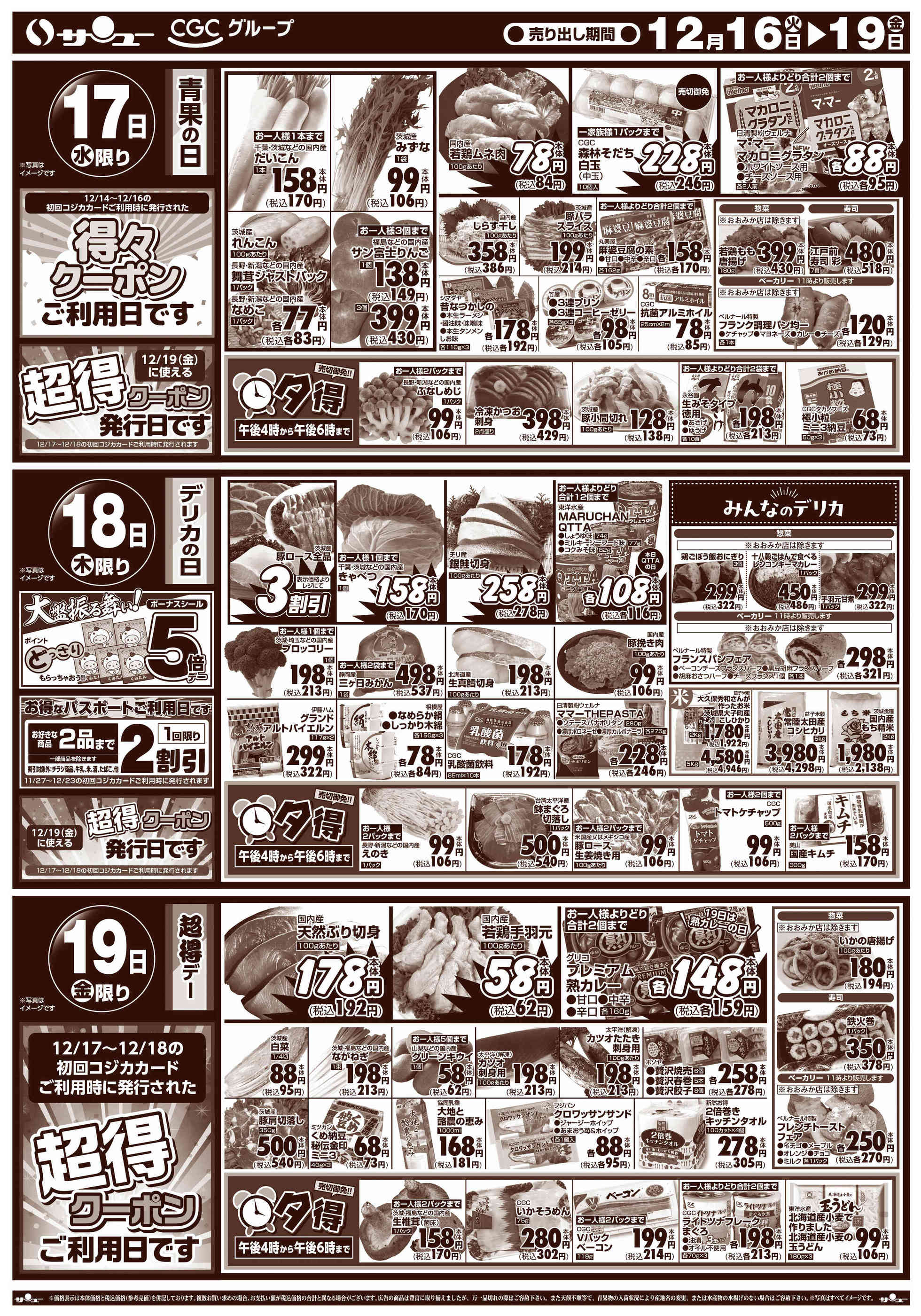 特売やセール情報など最新のチラシを掲載中。(3種類、3枚のチラシを掲載しています)